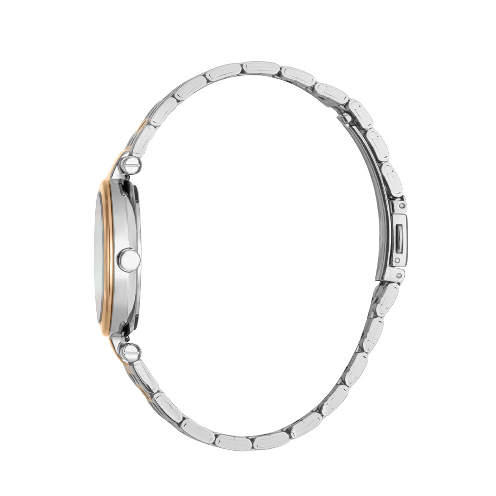 Crafted in polished steel, this 3-hand watch features a minimalist dial and stylish T-bar design paired with a two-tone stainless steel bracelet for a creative twist.