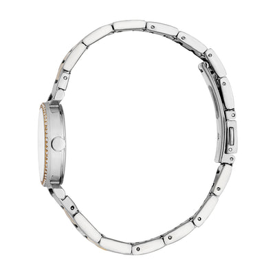 Timeless and elegant, this stainless-steel watch trimmed with dazzling zirconia stones with a perfectly matching bracelet will surely complete your outfit of the day.