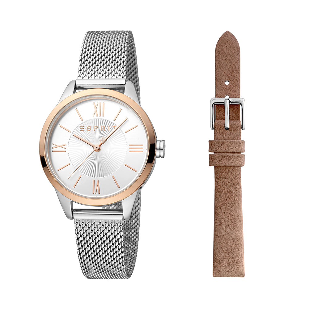 Can't decide between a metal bracelet or a leather strap? ESPRIT is taking the decision for you with this stunning set of both. Complementing each other, this set will perfectly suit your style.