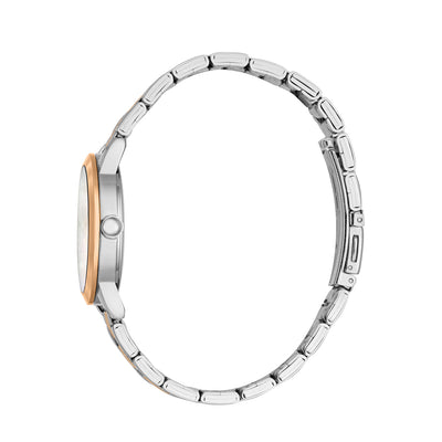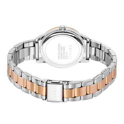 Two-tone stainless steel bracelet and rose gold watch case are winning complements for this striking crystal-set timepiece from Esprit.
