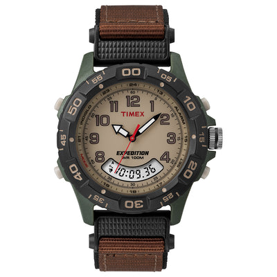 Be ready for any adventure possible with the Timex Expedition men's wristwatch. Featuring earthy colors, an easy to read face and wide variety of features, this watch is a casual entry suitable for everyday use, traveling, outdoor activities, and more.