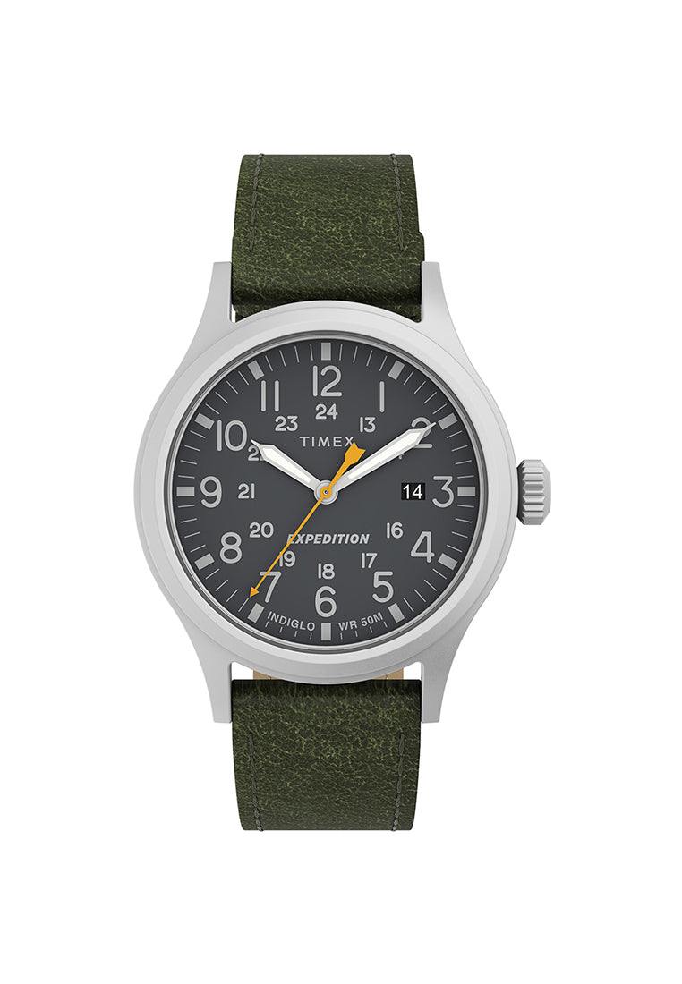 Sometimes you just need a trusted companion who's up for anything. This well-crafted update to our classic field watch gives you twelve or twenty-four hour time settings, date and a distinct arrow second hand. Completed with a brushed silver-tone case, grey dial and green natural leather strap -- it's everything you need and nothing you don't.