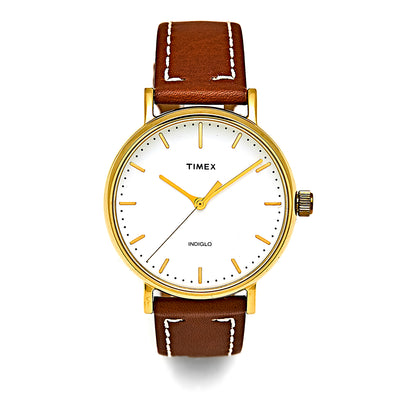 The Timex Fairfield's minimalist dial design and clean lines complement everything in your closet. You just found the only watch you’ll ever need. This unisex watch features a brown genuine leather strap and revolutionary Indiglo backlight technology, changing how the world told time in the dark.