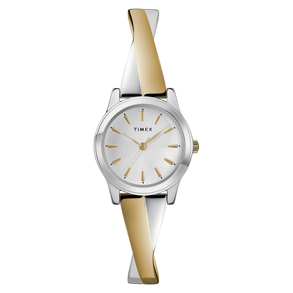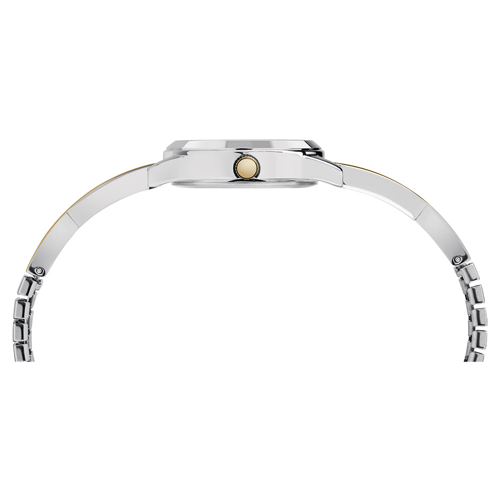 Design meets comfort with our fashion crisscross stretch bangle collection. We’ve paired the look of a stylish timepiece with its silver-tone case and dial with the convenience of a two-tone crisscross expansion band, creating the perfect accessory for any look.