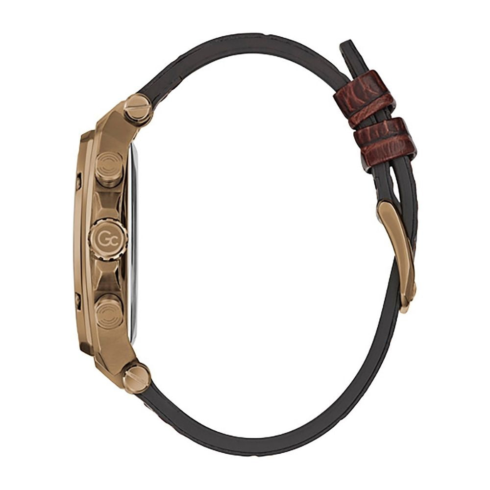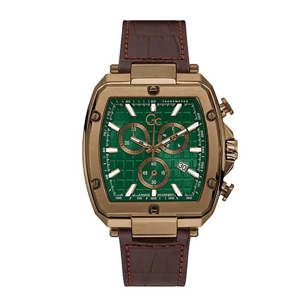The GC Spirit Tonneau timepiece is a fusion of sports and business. Wear it in any occasion. The rose gold coated stainless steel case in 44mm diameter is perfectly fitted in a leather strap.