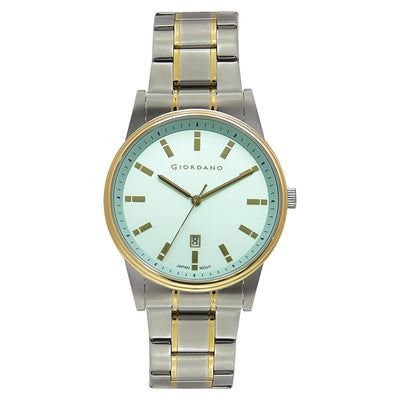 With its soft blue dial and dual-tone design, this Giordano watch combines tranquility and luxury. The gold bezel adds warmth, while the silver strap keeps it sleek and modern. Ideal for those seeking understated elegance with a contemporary edge.