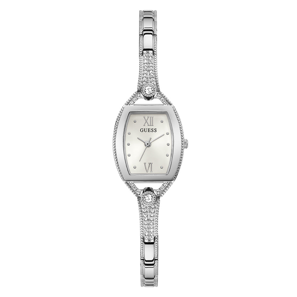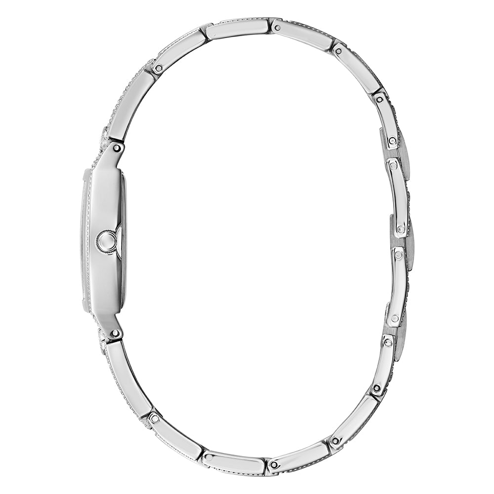 This deco inspired jewelry bangle watch is the perfect layering piece. It features crystal and beading details and self-adjustable silver g links for easy sizing.