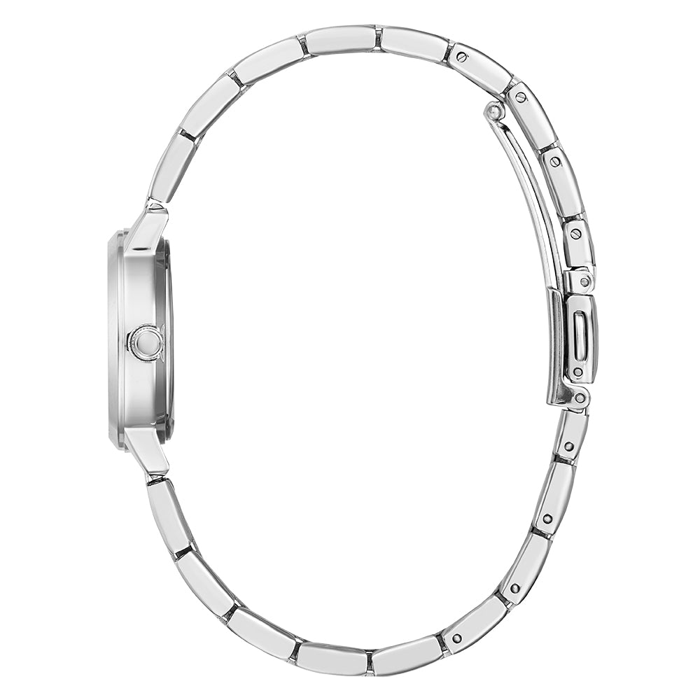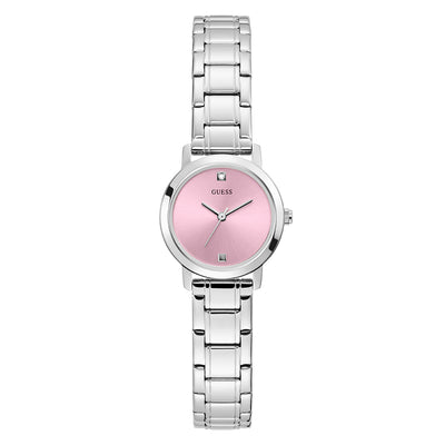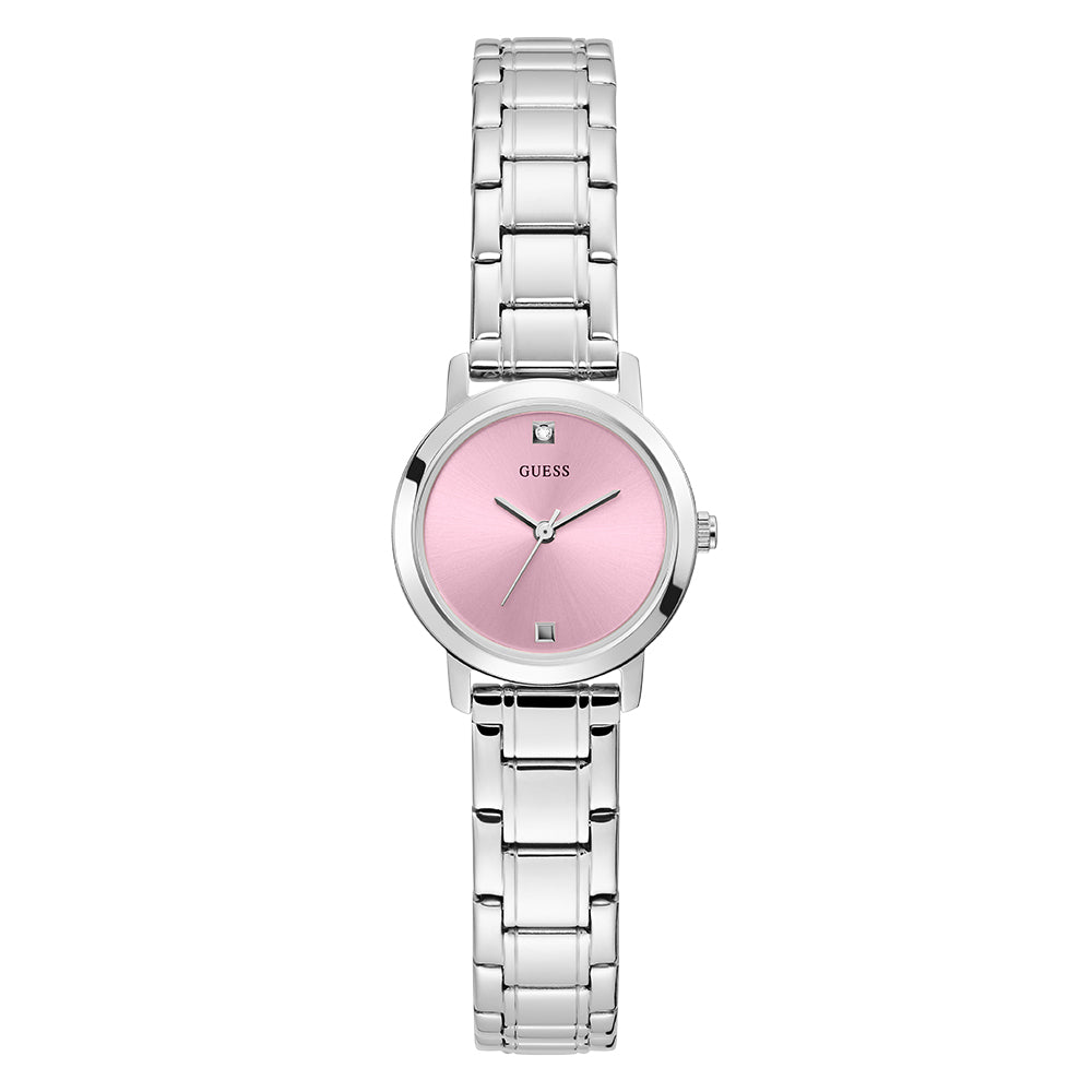 The perfect piece to layer with your favorite bracelets or to style alone. It has a sleek sunray finish pink dial with a genuine diamond marker at the 12 o' clock hour.