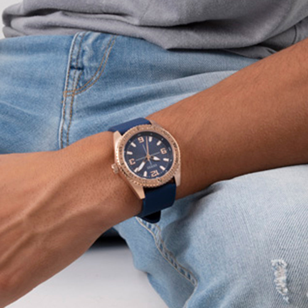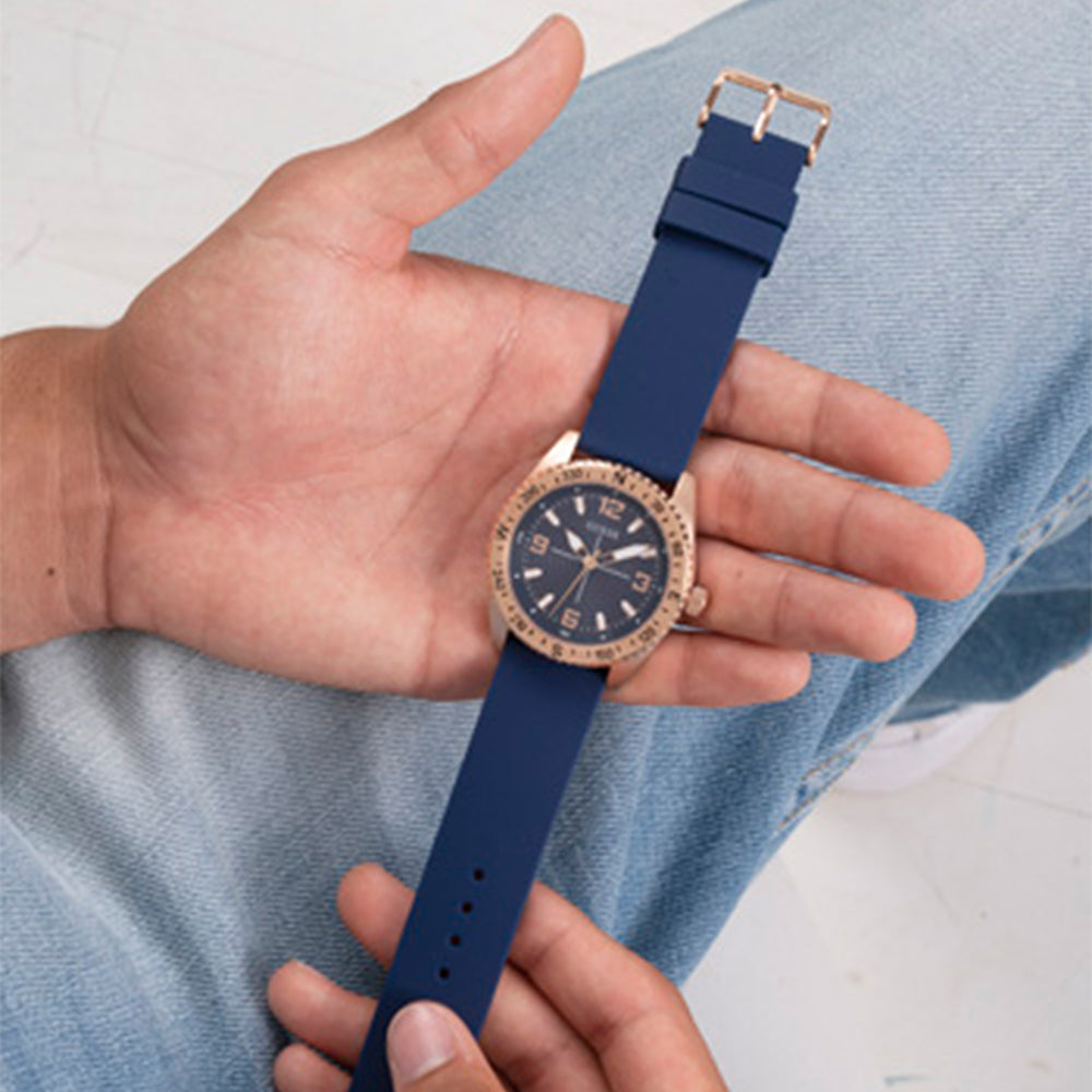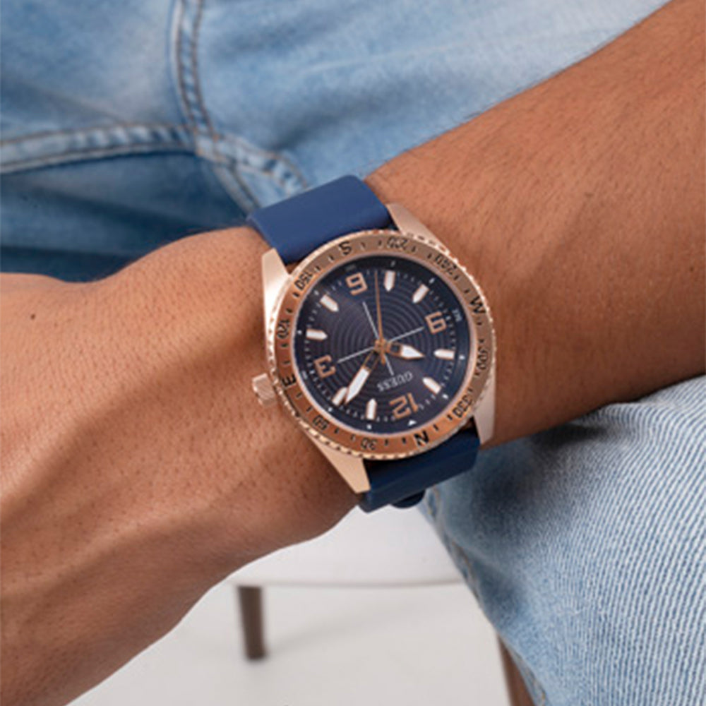 Discover your true north with this compass-like watch design that pairs perfectly with a smooth silicone strap.