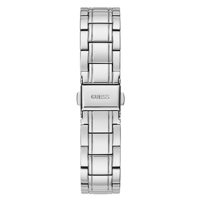 This refined silver watch gives its wearer a unique look at the intricate movement through a clear-cut dial design.