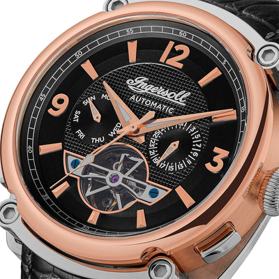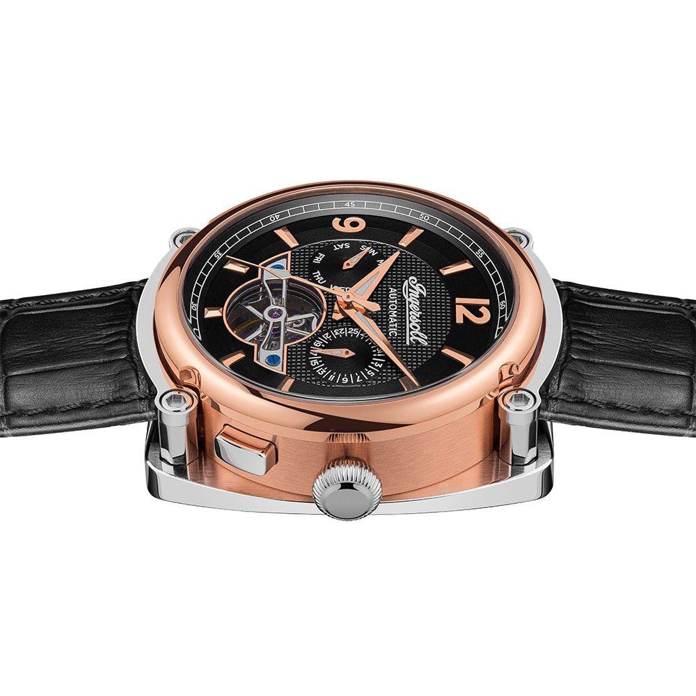 Michigan had a significant meaning to the Ingersoll brothers. The Ingersoll family were the first settlers in the Delta County in Michigan (1835) they established a township and an industry in the area. The muscular detailed watch case design and two-toned colourways are regular features of this watch.