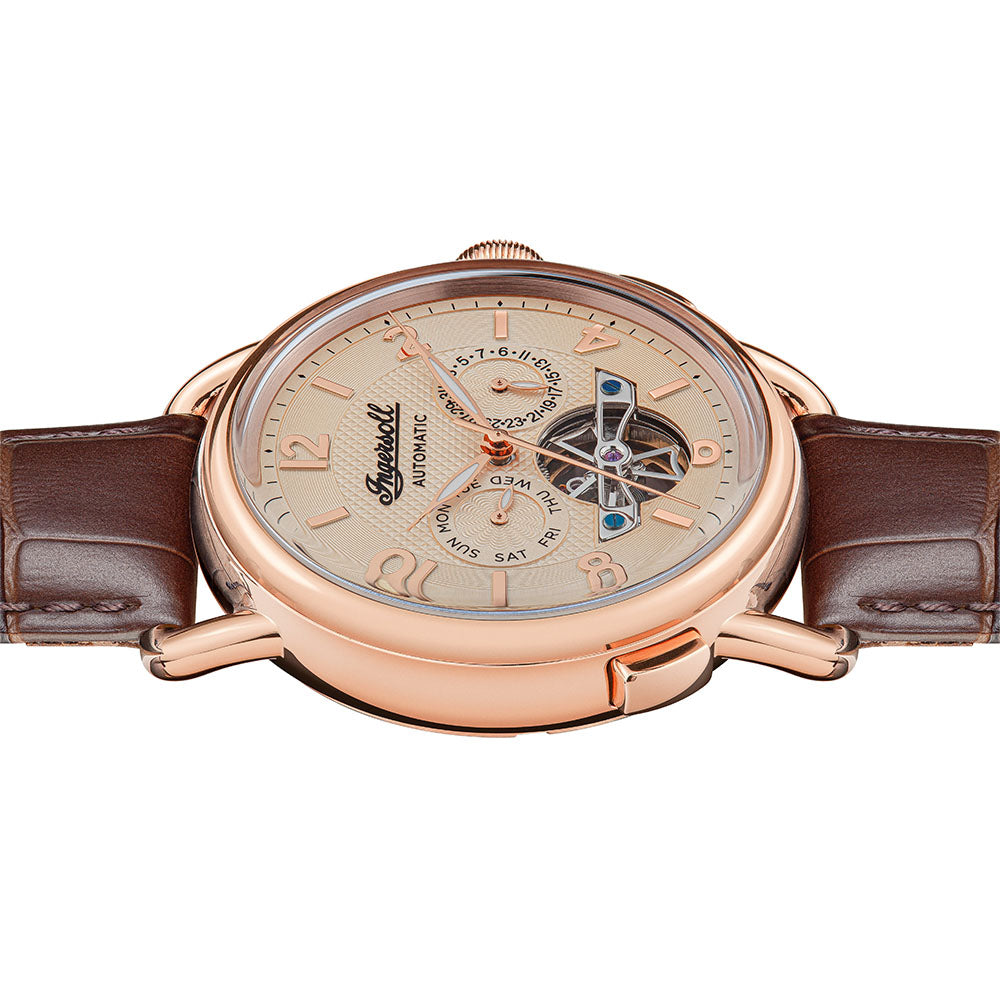 New England Watch Company formerly known as the Waterbury Clock Company was one of the first factories to manufacture an Ingersoll watch and was purchased by the Ingersoll brothers in 1914. The New England men's watch range is easily recognised by its original watch casing and simple dial face.