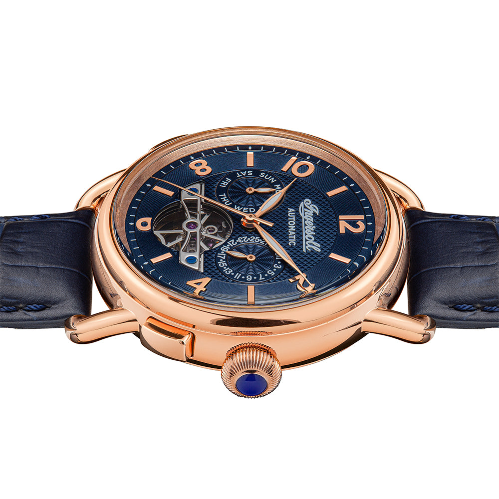 New England Watch Company formerly known as the Waterbury Clock Company was one of the first factories to manufacture an Ingersoll watch and was purchased by the Ingersoll brothers in 1914. The New England men?s watch range is easily recognised by its original watch casing and simple dial face.