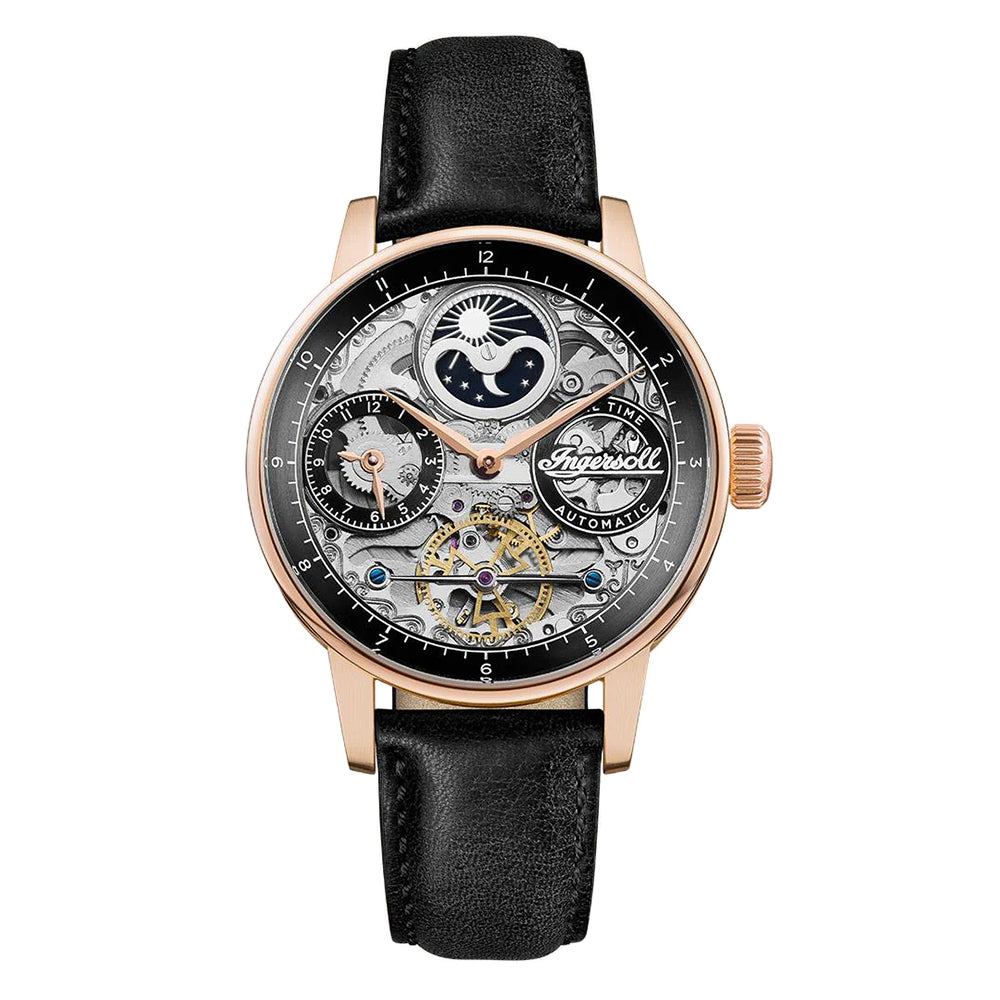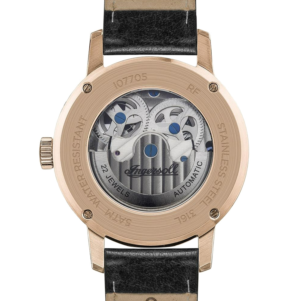 Encapsulating the creative spirit of music and the inspirational emotion that endures. the dial is dominated by the complexities of this beautifully engineered automatic movement, whilst the exhibition case back offers further testament to the watchmaking skill and attention to detail at the heart of every ingersoll creation