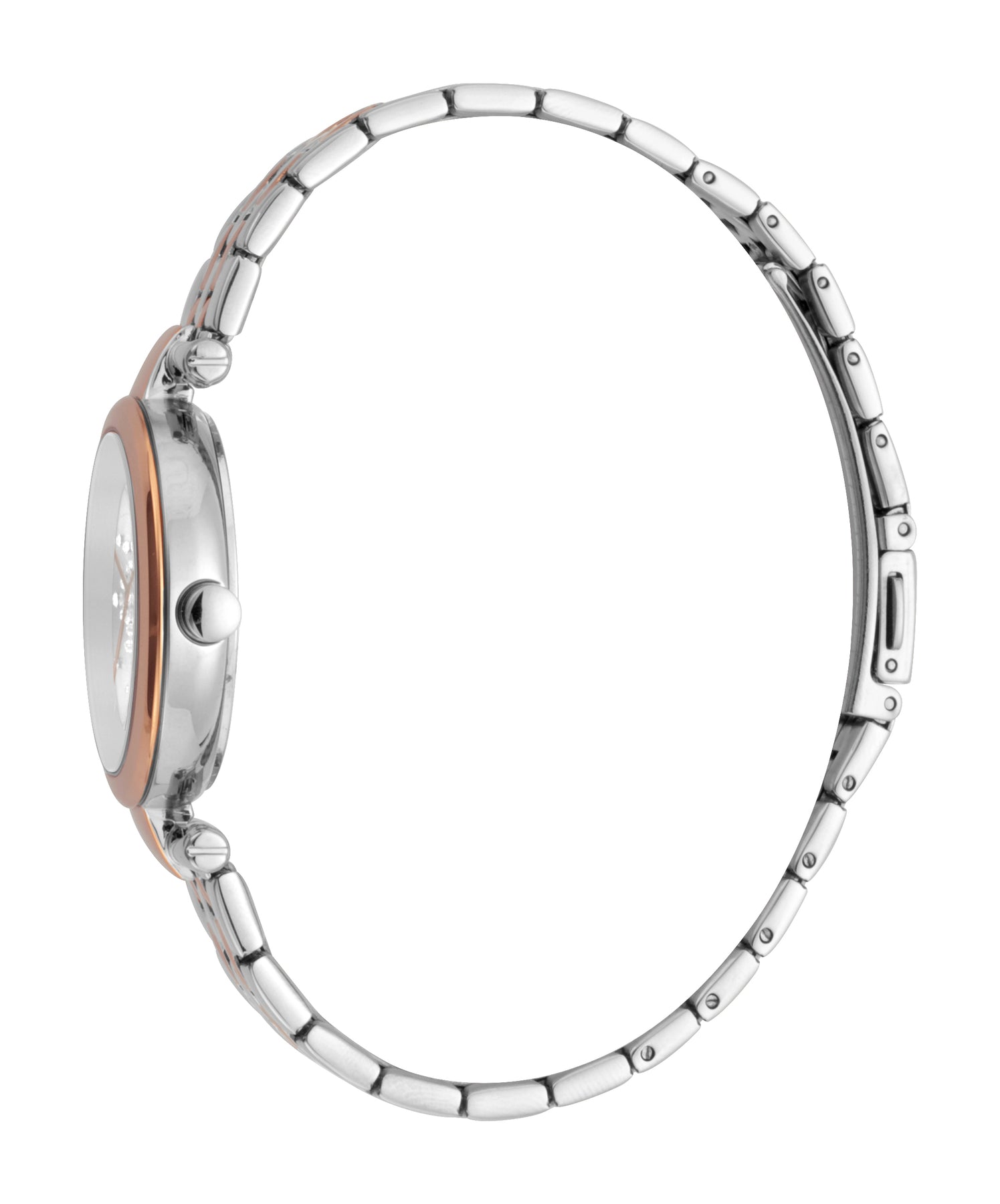 The sparkling zirconia trim and fine stainless steel link strap give this watch its elegant look.