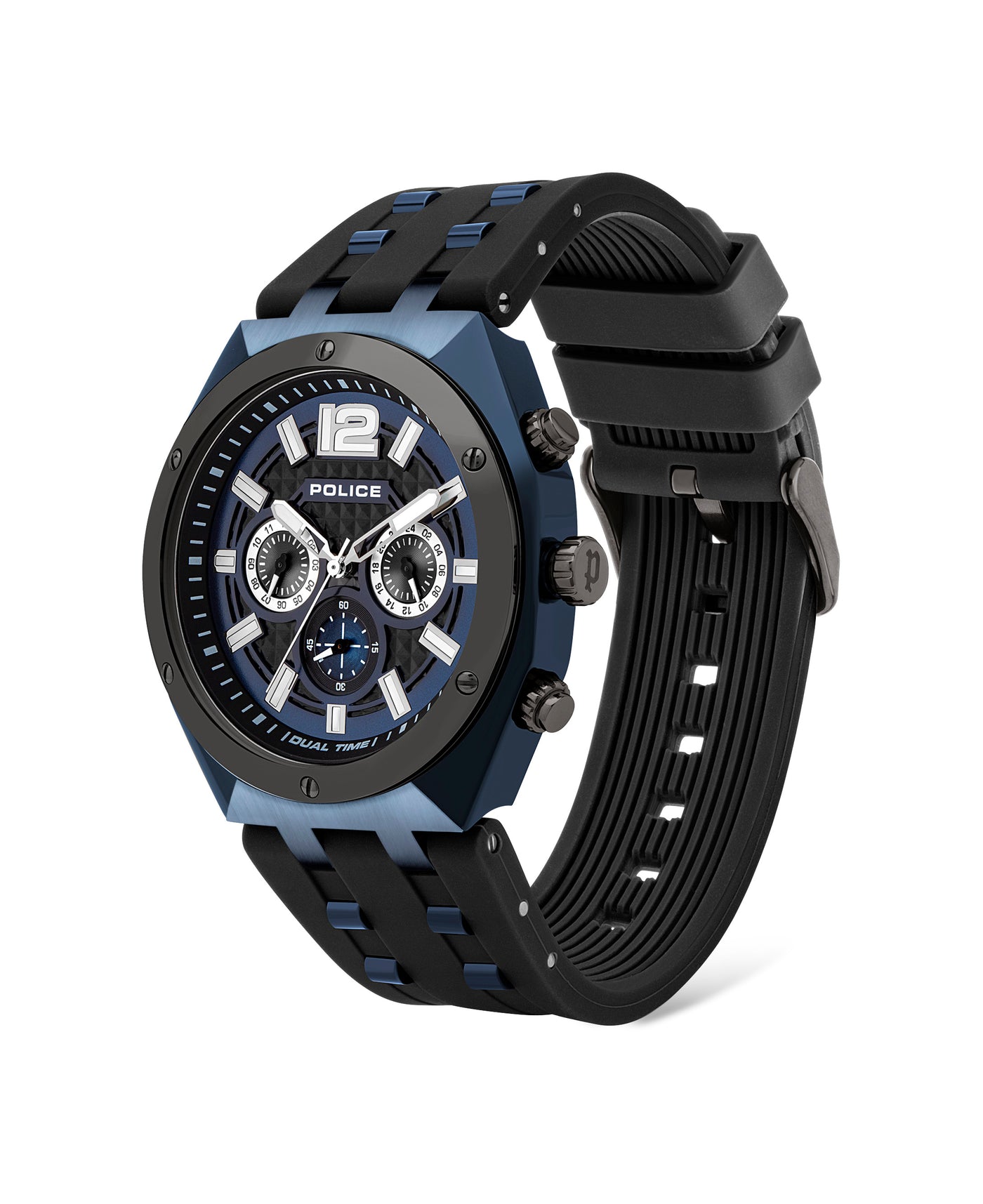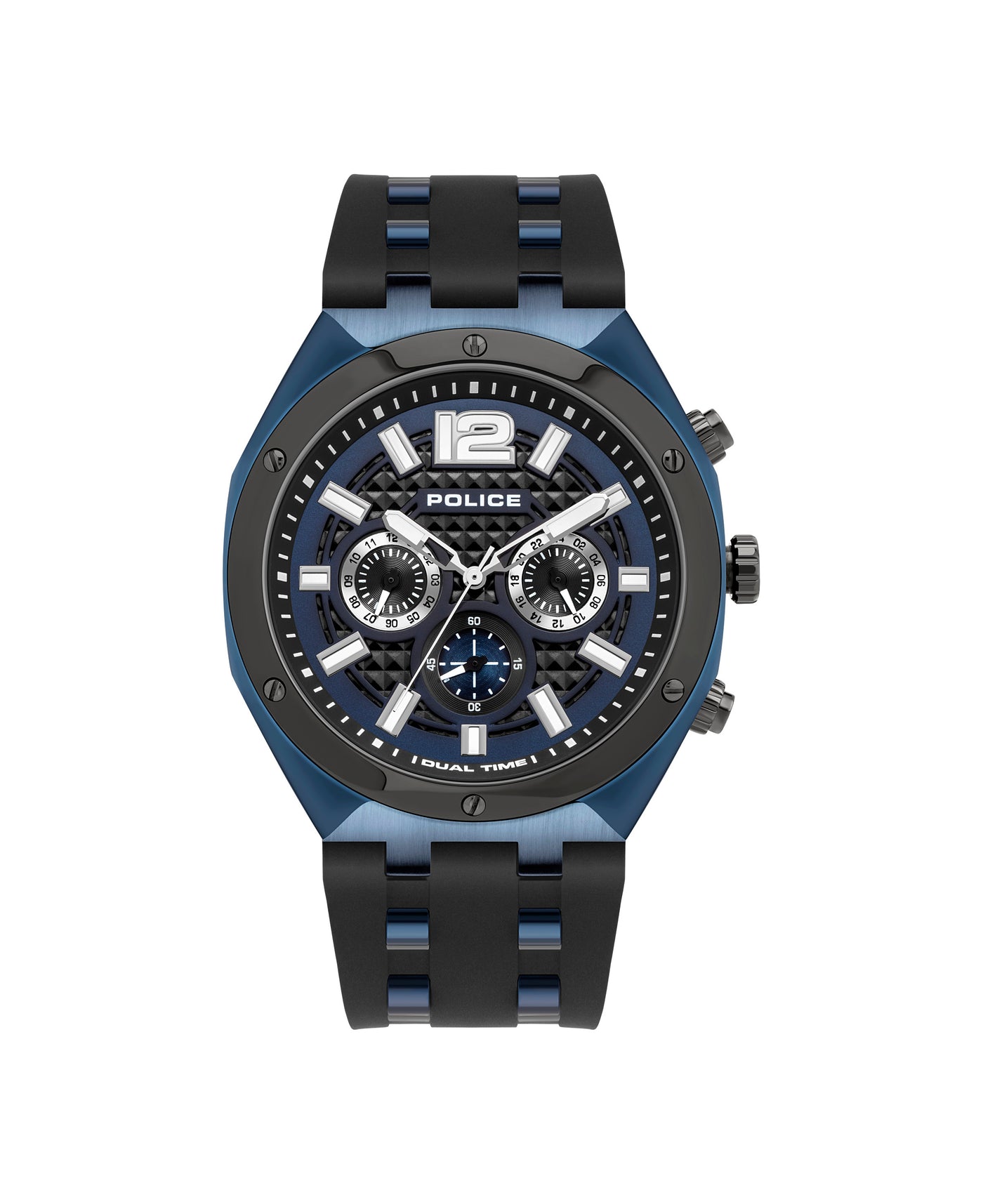 If finesse and simplicity had a name, Kediri by Police would own it. This is an elegant 3-hand, dual time watch with three elaborate sub dials arranged within.