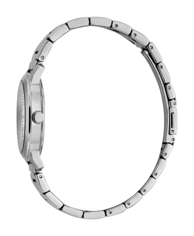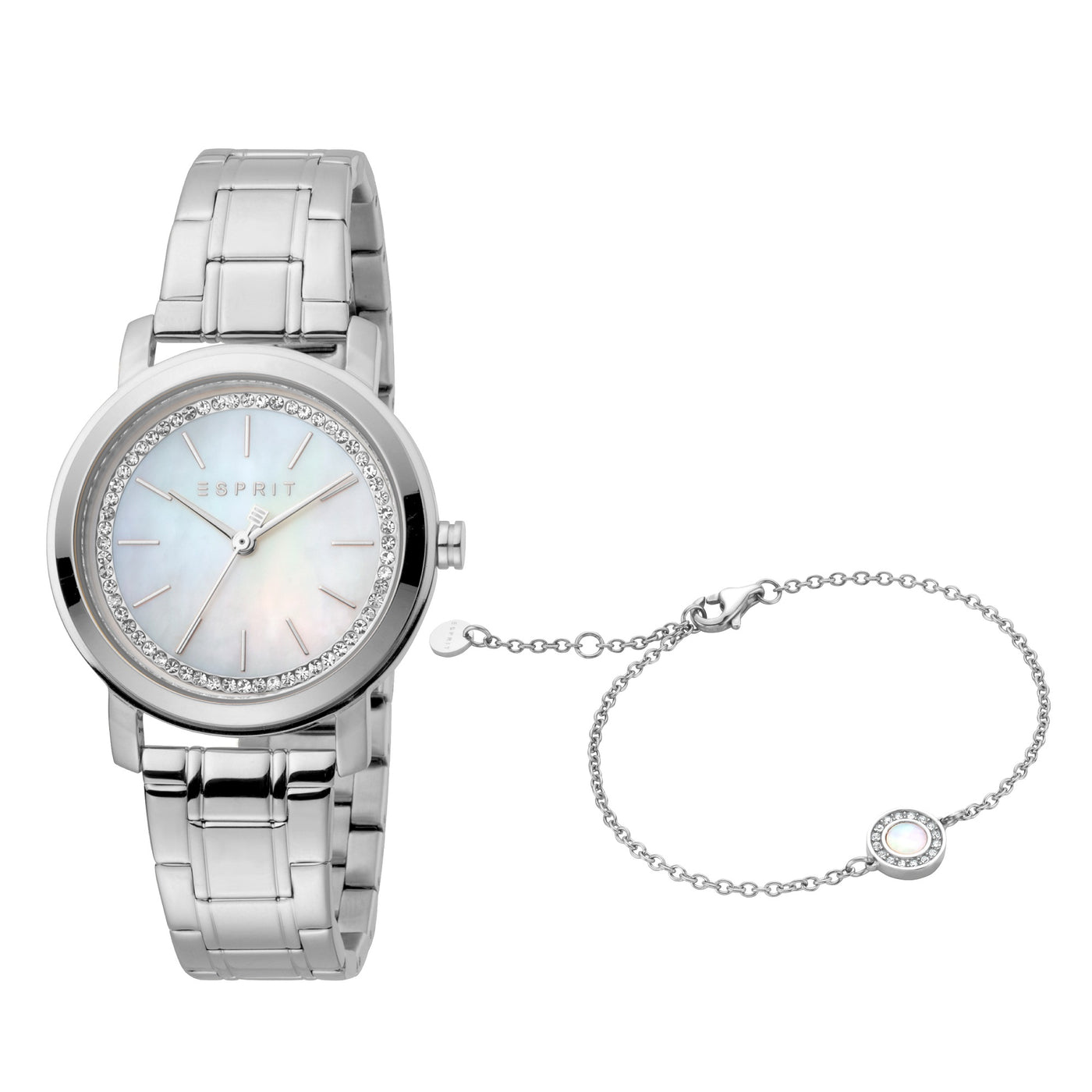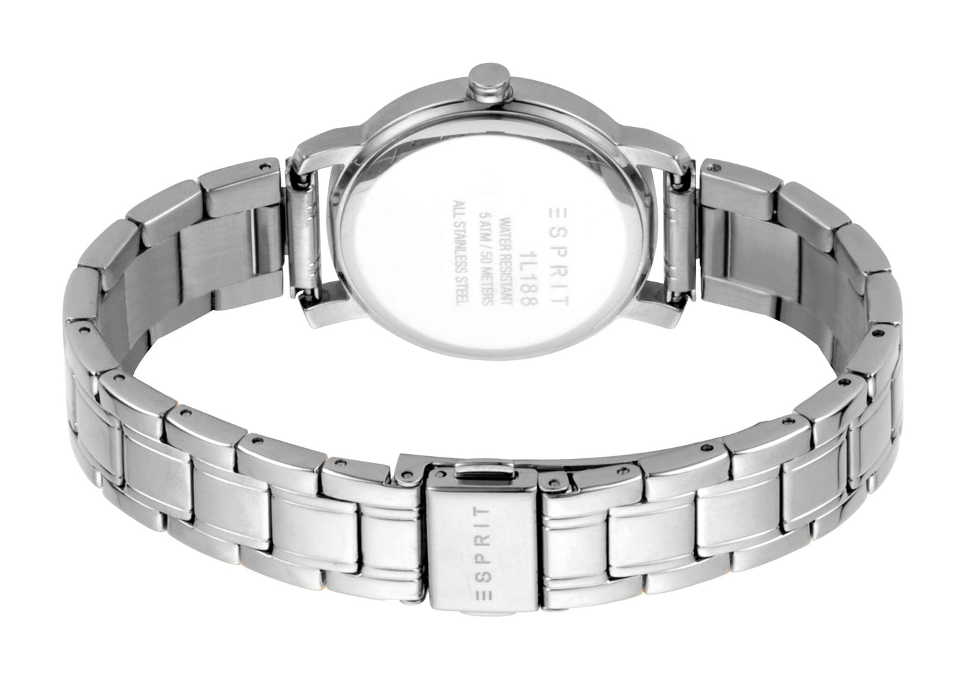 Vibrant Mother of Pearl dial with elegant and flowless bezel blends artistically with the joy of sparkling crystals. This luxe fashion accessory from Esprit is a sure style enhancer, and one of the best ladies' watches.