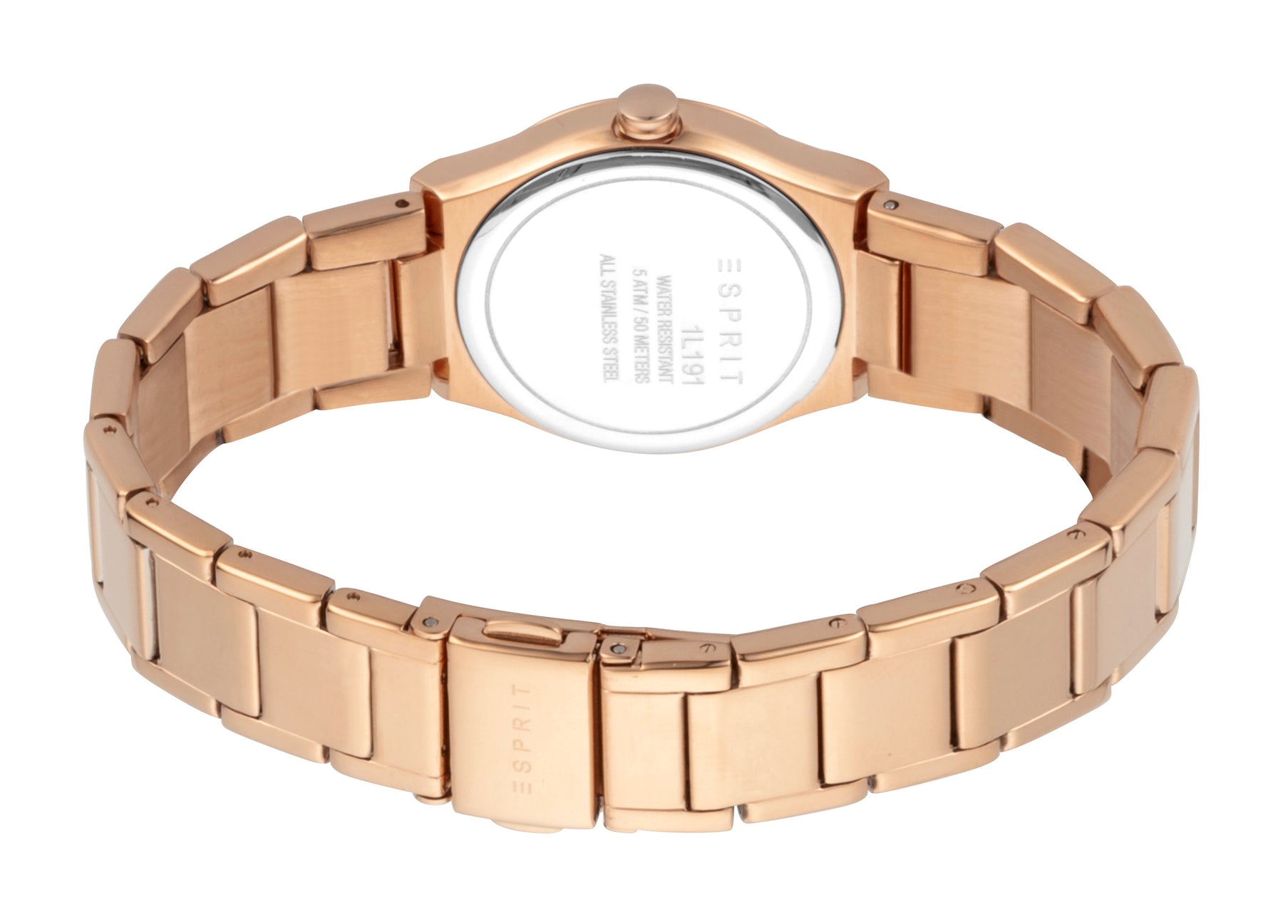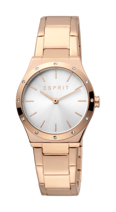 Searching for a watch to complement your style? Easy or exquisite? We are delighted to announce this model from ESPRIT can do both.The classic sunray dial exudes the quietude of the flow of time. The bold bezel with radiant crystals gives this premium ladies' wrist watch an accentuated style definition.