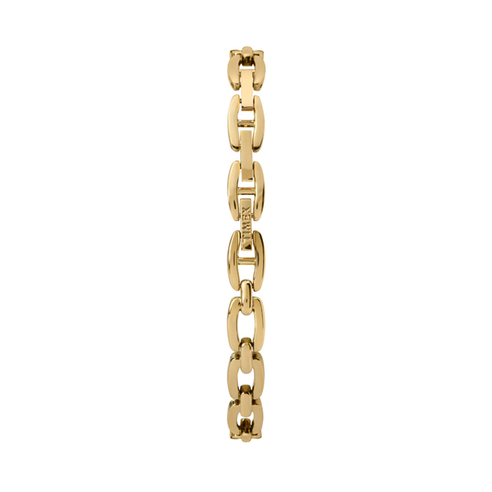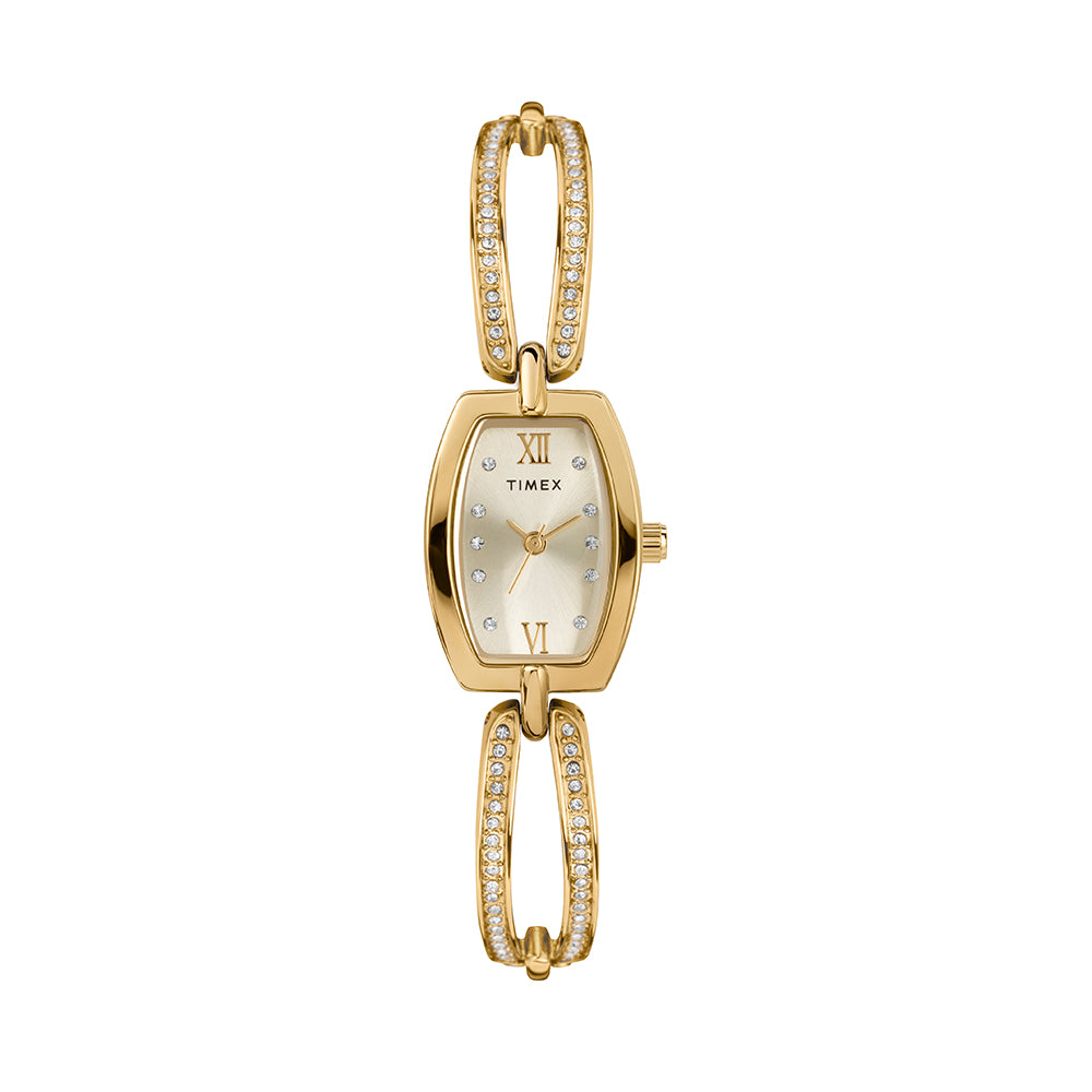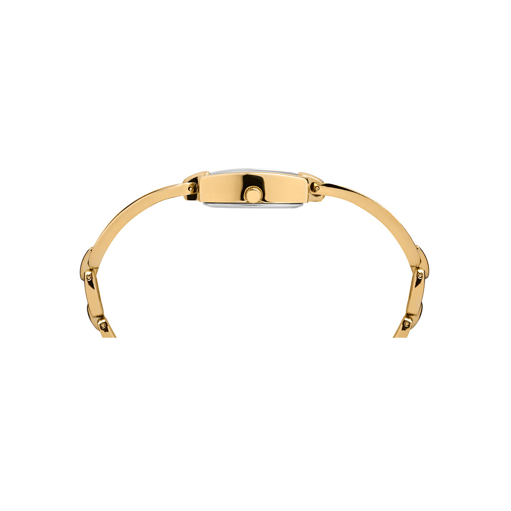 It's easy to see how this timepiece takes you from day to night. With simple elegance in mind, the gold-tone bangle with self-adjustable jewelry links and shimmering Swarovski® crystals offers a lasting look for years to come.