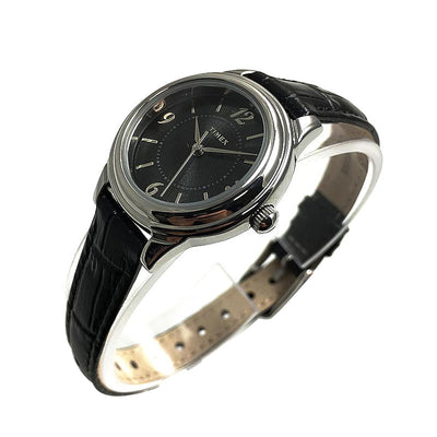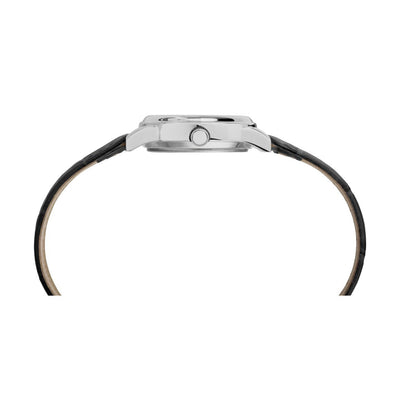 There’s power in simplicity. Adding a hint of understated elegance to your look, this watch features a silver-tone case, black dial and black croco-pattern-leather strap.