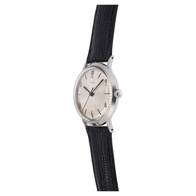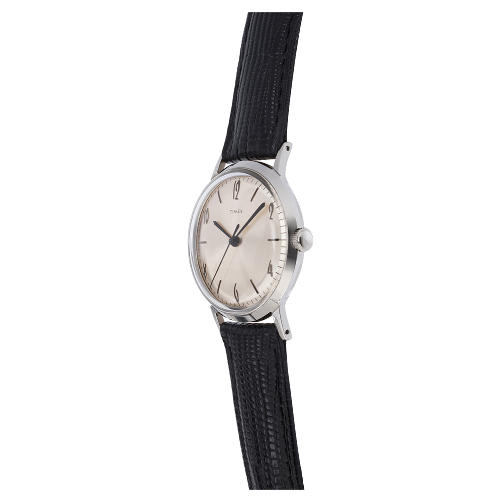 The Gentleman’s standard – then and now. This reissue of a 1960s timepiece pairs the purity and pleasure of a hand-wound mechanical movement with the timeless sophistication of a sleek design. Wind the crown until you feel a slight resistance. This is best done at the same time each day to keep the watch continually running.