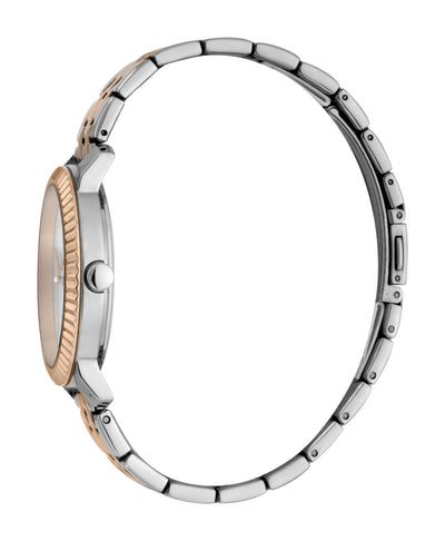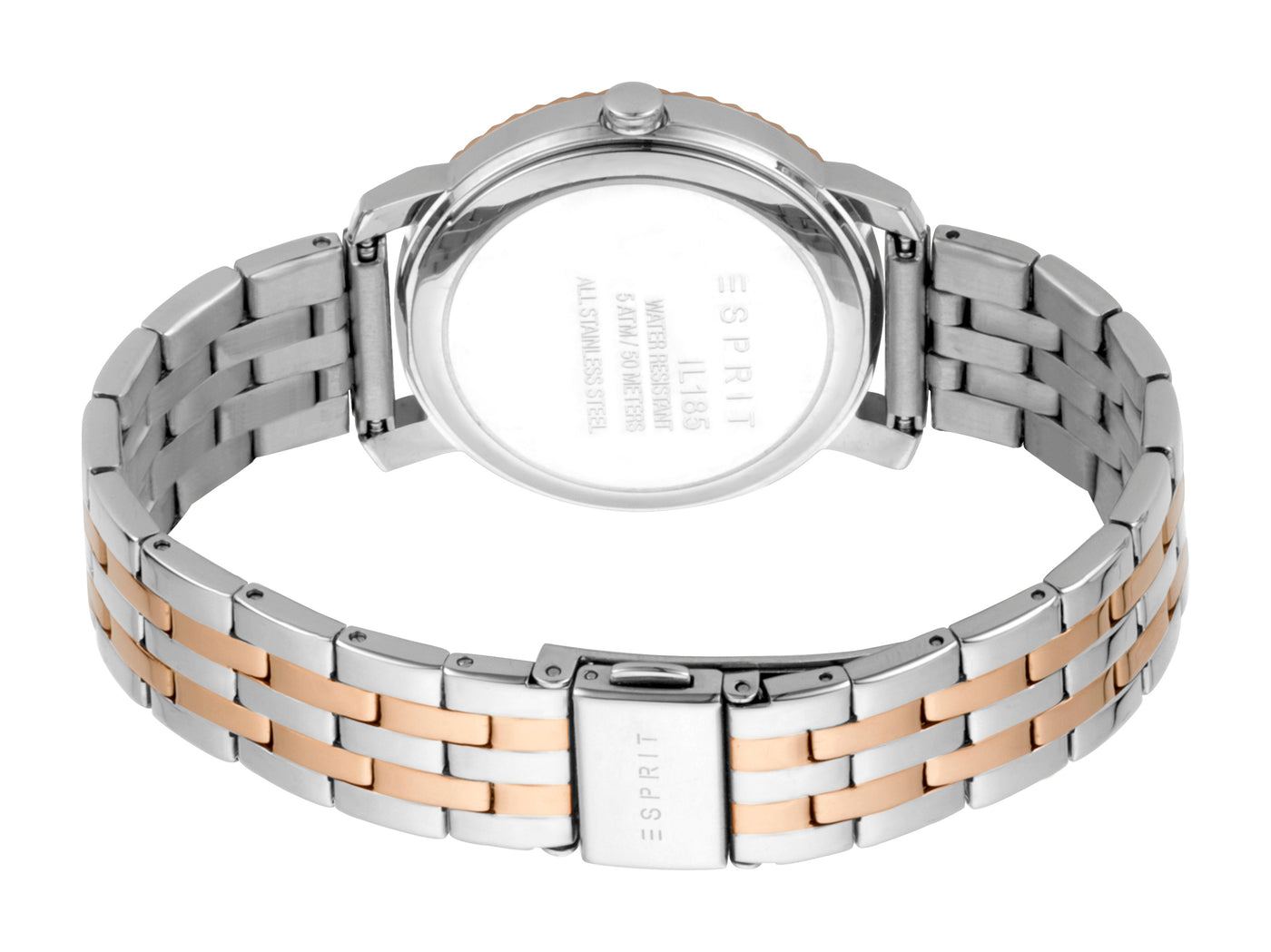 Elegance and sensuality combined with first-class quality defining this favorite from Esprit. The Two tone rose gold plating and dial set with fine zirconia gives this watch its elegance.