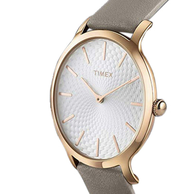 With elegant, textured dial details and a rich grey leather strap, this ultra-thin rose-gold tone watch case offers a touch of simplicity and sophistication to your day-to-night look. You will always be a step ahead with our Metropolitan collection.