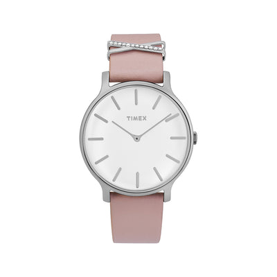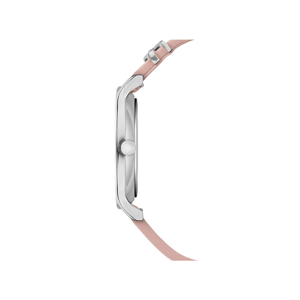 With an elegant pearl white dial and accessory detailed blush leather strap, this ultra-thin gold-tone watch case offers a touch of simplicity and sophistication to your look. You will always be a step ahead with our Transcend collection.