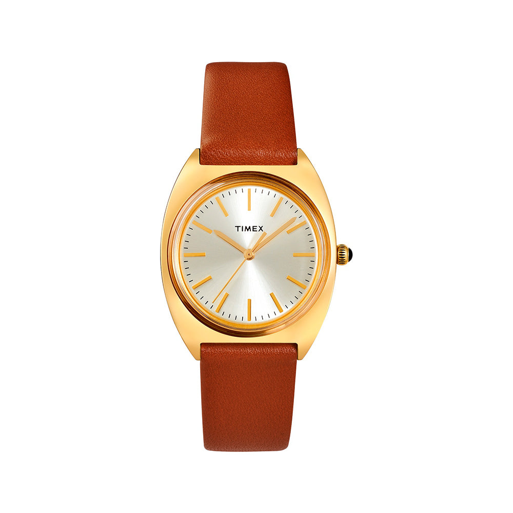 A timeless wardrobe staple as trusted as your favorite jeans, the vintage-inspired ‘70s design of our Milano pairs its new 33mm gold-tone case with a gold-tone dial and burgundy natural leather strap.