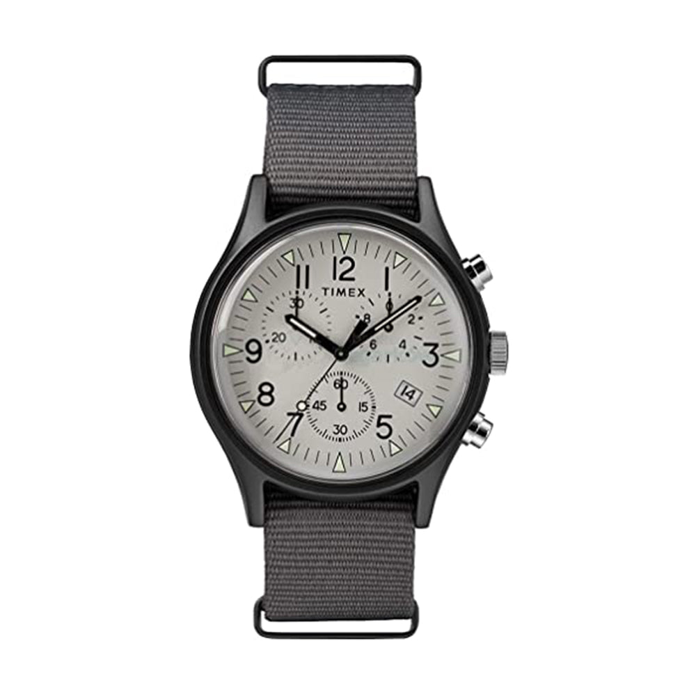 We’ve updated our iconic military watch with new features to create the MK1™ Aluminum Chronograph. The anodized gray aluminum case provides strength without weight, and the gray double-layer fabric slip-thru is our most comfortable strap yet.