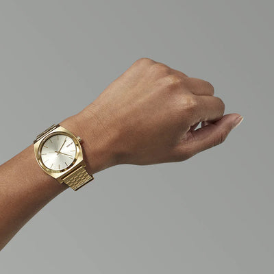 An icon of Nixon heritage, the Time Teller?s vibe celebrates simple sophistication. The minimalist design is the perfect canvas for your aesthetic expression, while its 100m /10ATM waterproof rating means getting wet is no big deal. It?s always down to collaborate and with a full spectrum of fi nishes, whatever your style, there?s a Time Teller for you.
