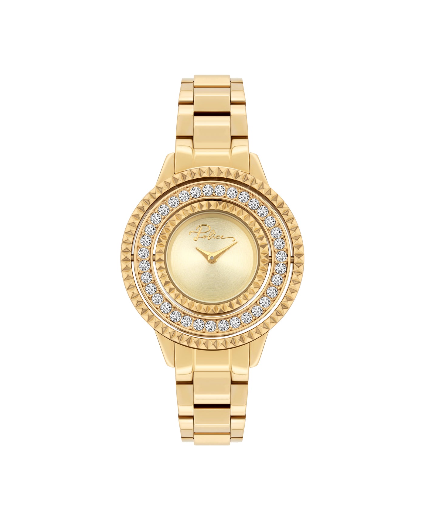 Unique in every aspect of its design, Pilat features a rotating bezel and a brushed metal dial.