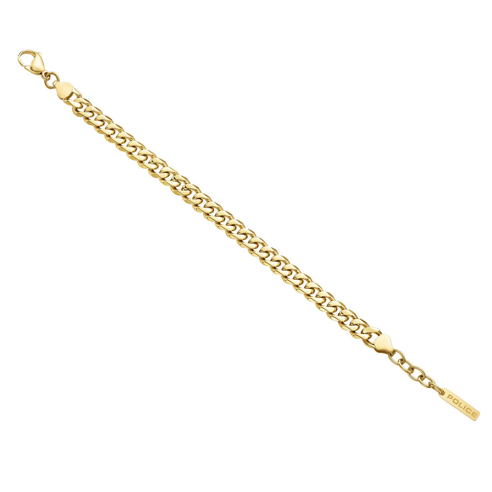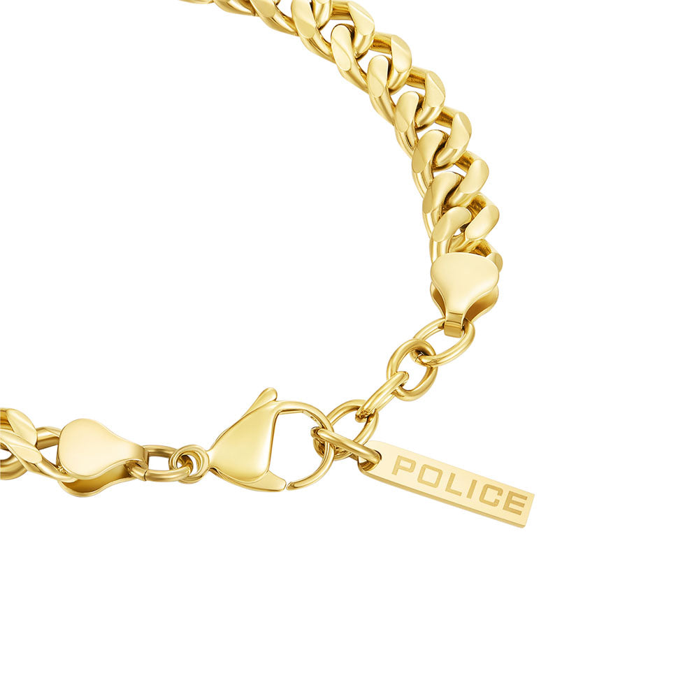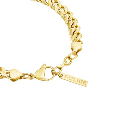 The Long-Lasting bracelet from the Police collection features bold lines -everything you need to express your style. The IP gold stainless steel shiny cuban chain adds a stunning accent to the distinctive look. The striking lobster clasp allows the bracelet to rest securely on the wrist.