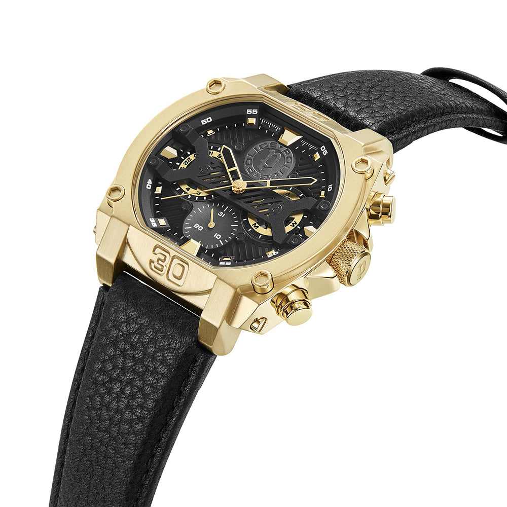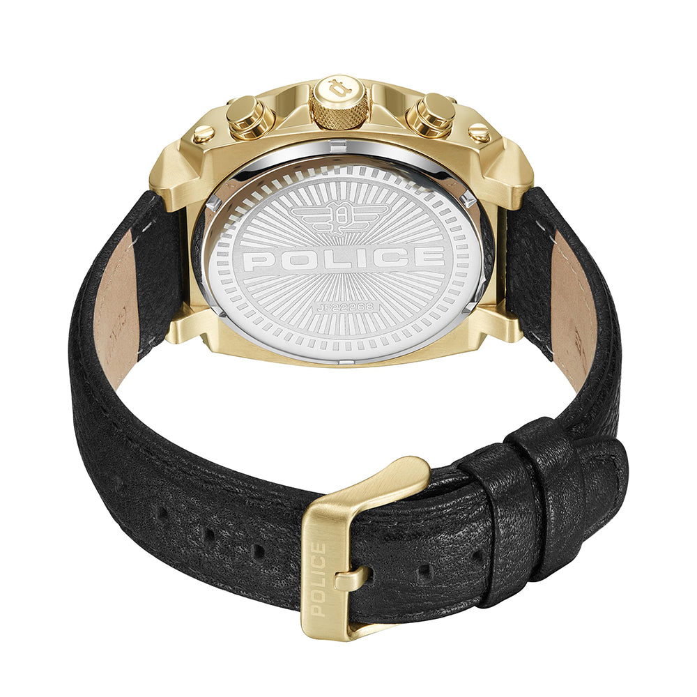 Norwood is a daring Police watch with skeleton dial. Norwood features a multifunction movement with date window and 5 ATM water resistance. The 45mm sized case holds four decorative screws and is attached to a genuine leather strap.