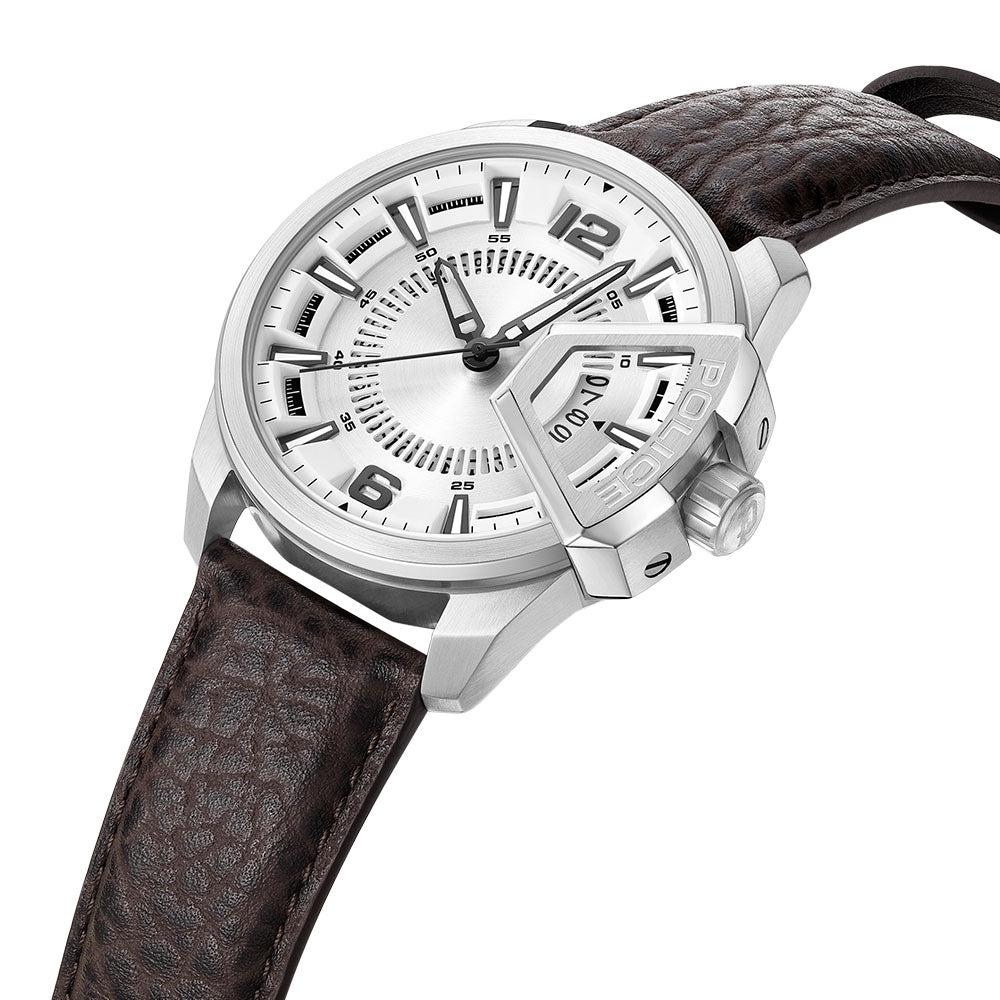 Engineered for every occasion, the Police men's Underlined impresses with its rebel aesthetic. Featuring a unique date window indicator which sits atop the IP silver brushed and polished stainless steel case, the design of Underlined is edgy and a statement piece.