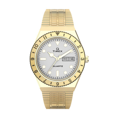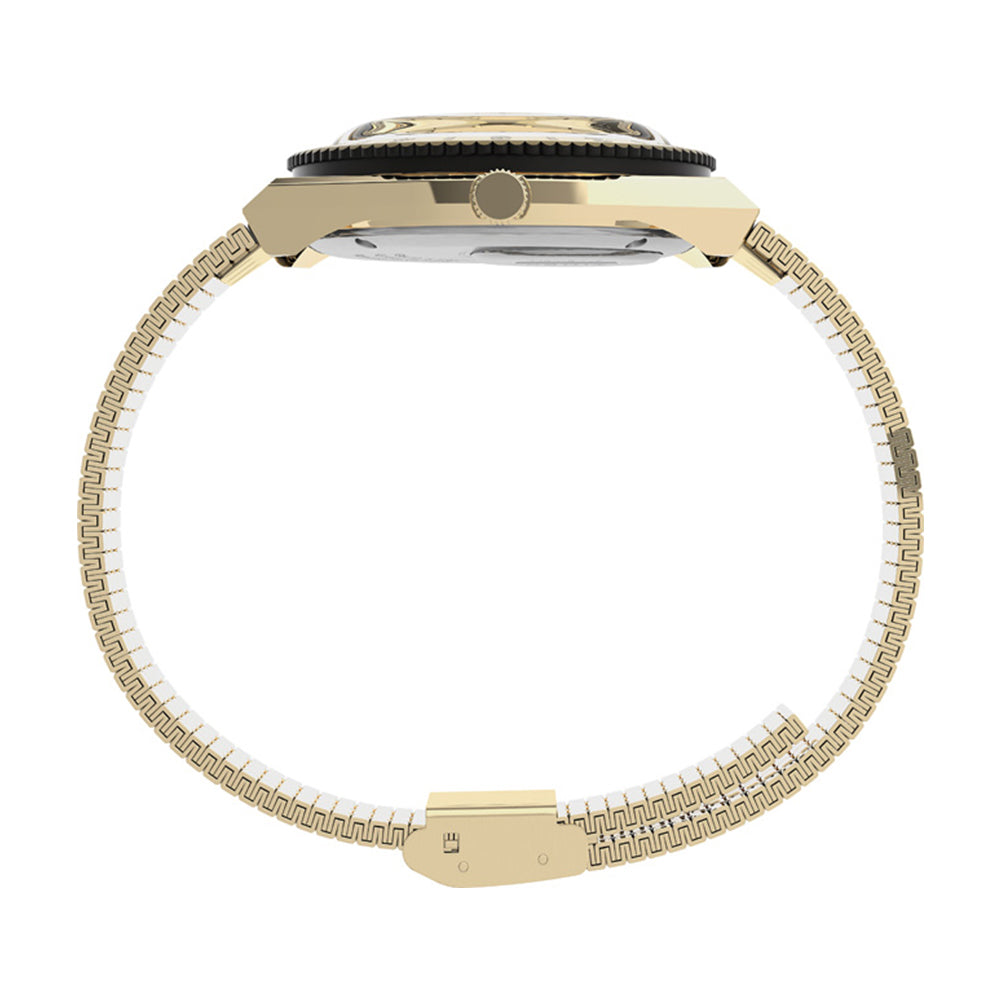 Perfect for everyday wear with a chic, neutral color palette. Inspired by our archival Q Timex designs from the age of Quartz, we stayed true the original details – including a gold-tone rotating bezel, functional battery hatch and domed acrylic crystal. The 36mm gold-tone stainless-steel case is paired with a cream dial and a comfortable woven gold-tone stainless-steel strap, easily adjustable for a look and fit you’ll love.
