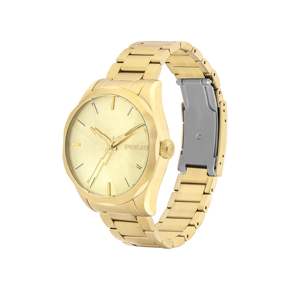 The Raglan watch is a true masterpiece: the facet is composed by a diamond effect treatment. The dial is composed by raised/contrast Police logo and raised and thin/thick markers.