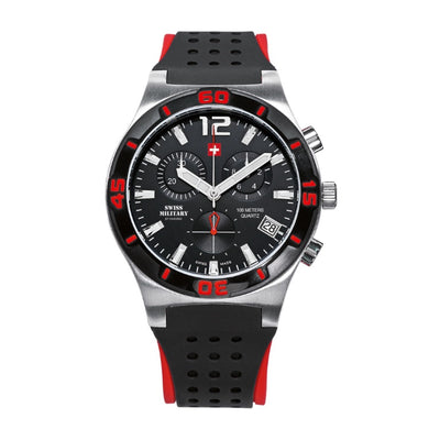Throughout the world, SWISS MILITARY watches manufactured by Chrono AG are well known for their outstanding design and quality. The timepieces of sportive look and adventurous spirit suit those who lead an active lifestyle, be this in business or during leisure time. The brand and its timepieces are symbols of the intrinsic and highly esteemed Swiss values of precision and quality.