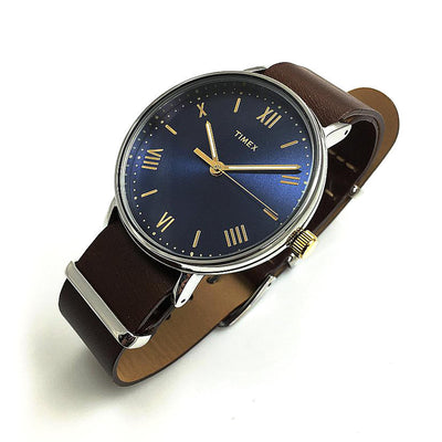 We’ve combined elevated style with the precision craftsmanship you’ve come to expect from Timex. The blue dial and two-tone case paired with a rich brown leather slip-thru strap gives you a refined look you can wear from day to night.