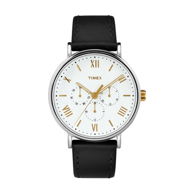 We’ve combined premium style with the precision craftsmanship you’ve come to expect from Timex. The white dial and two-tone case paired with a rich black leather strap gives you a distinguished look you can wear from day to night.