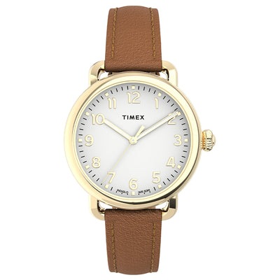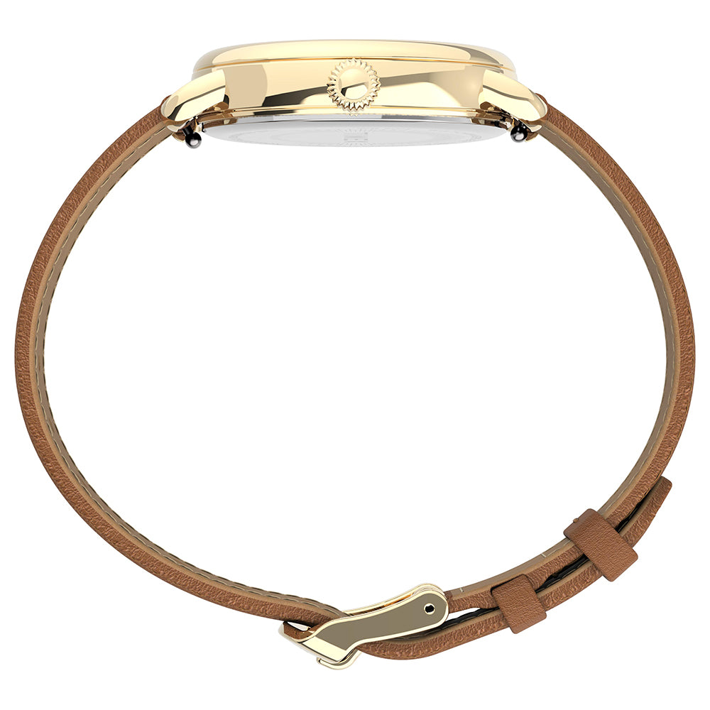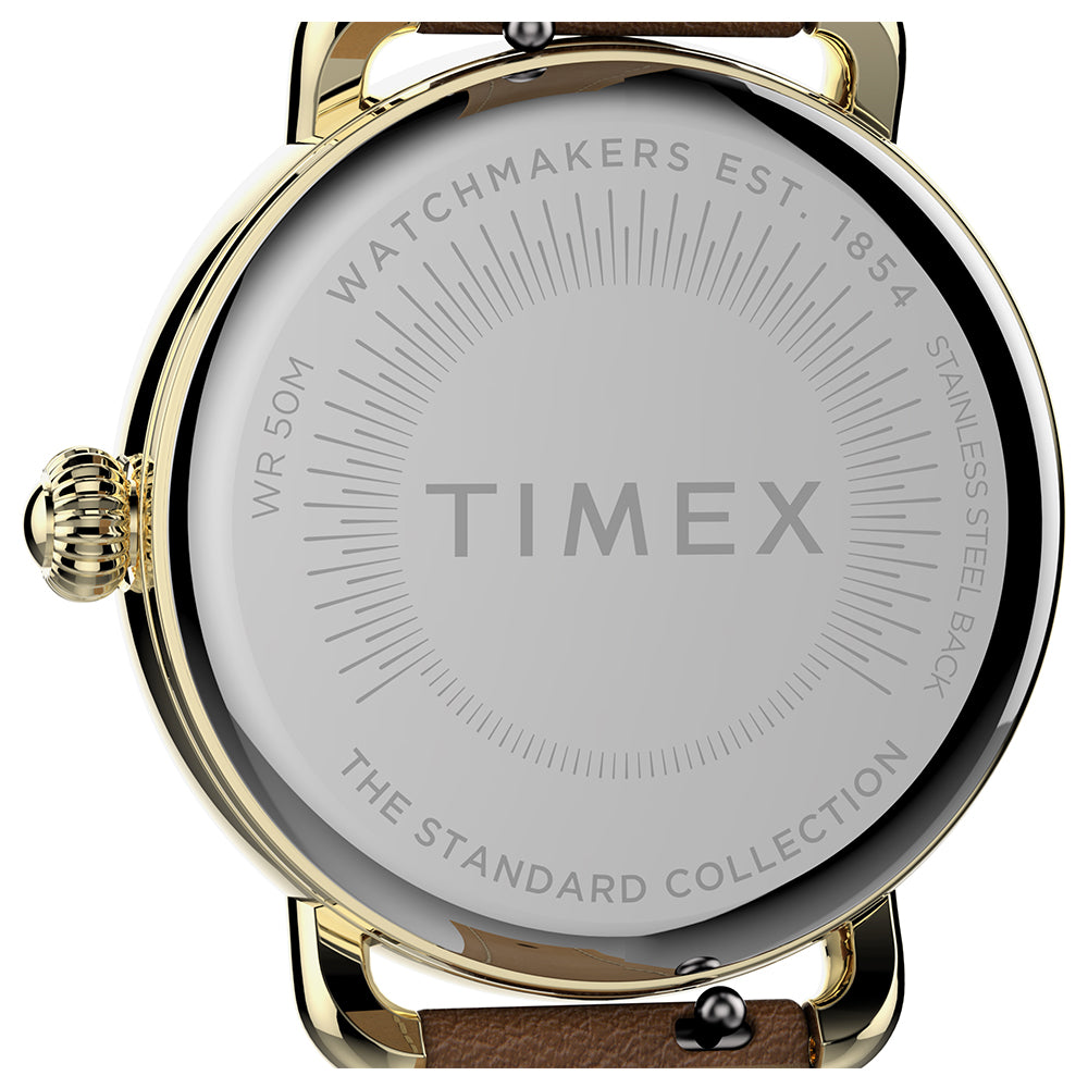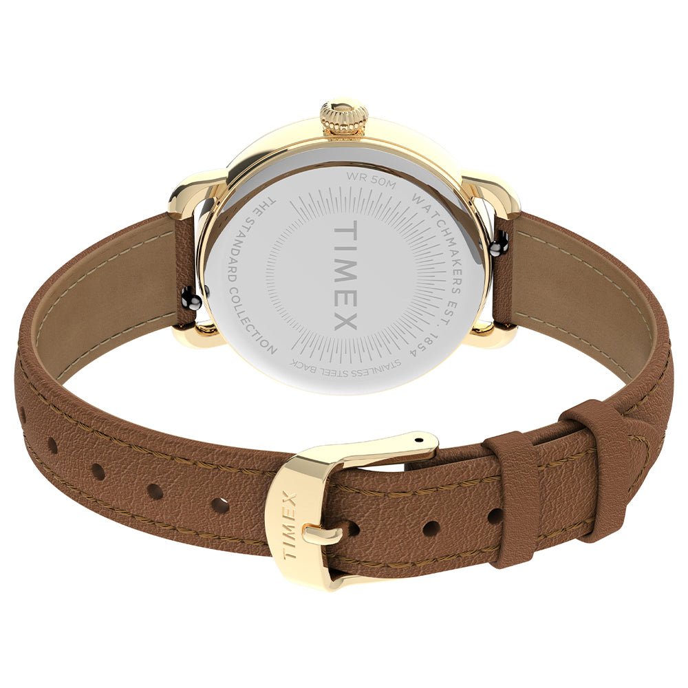 Get ready to up your standards. Our Timex® Standard shines as one of our most refined everyday watches with a gold-tone case, silver-tone dial and tan natural leather strap. With careful attention to detail, we’ve crafted a timepiece perfect for everyday wear bringing together modern materials and classic watchmaking elements, including the vintage-inspired oversized crown — a nod to our original wrist watch.