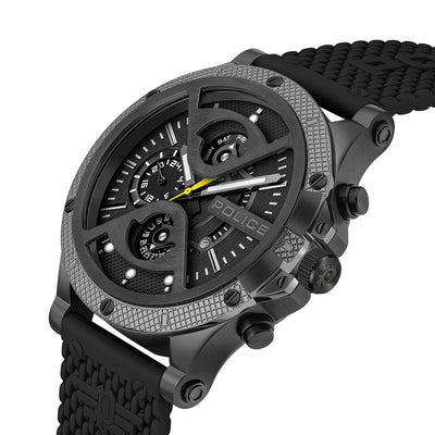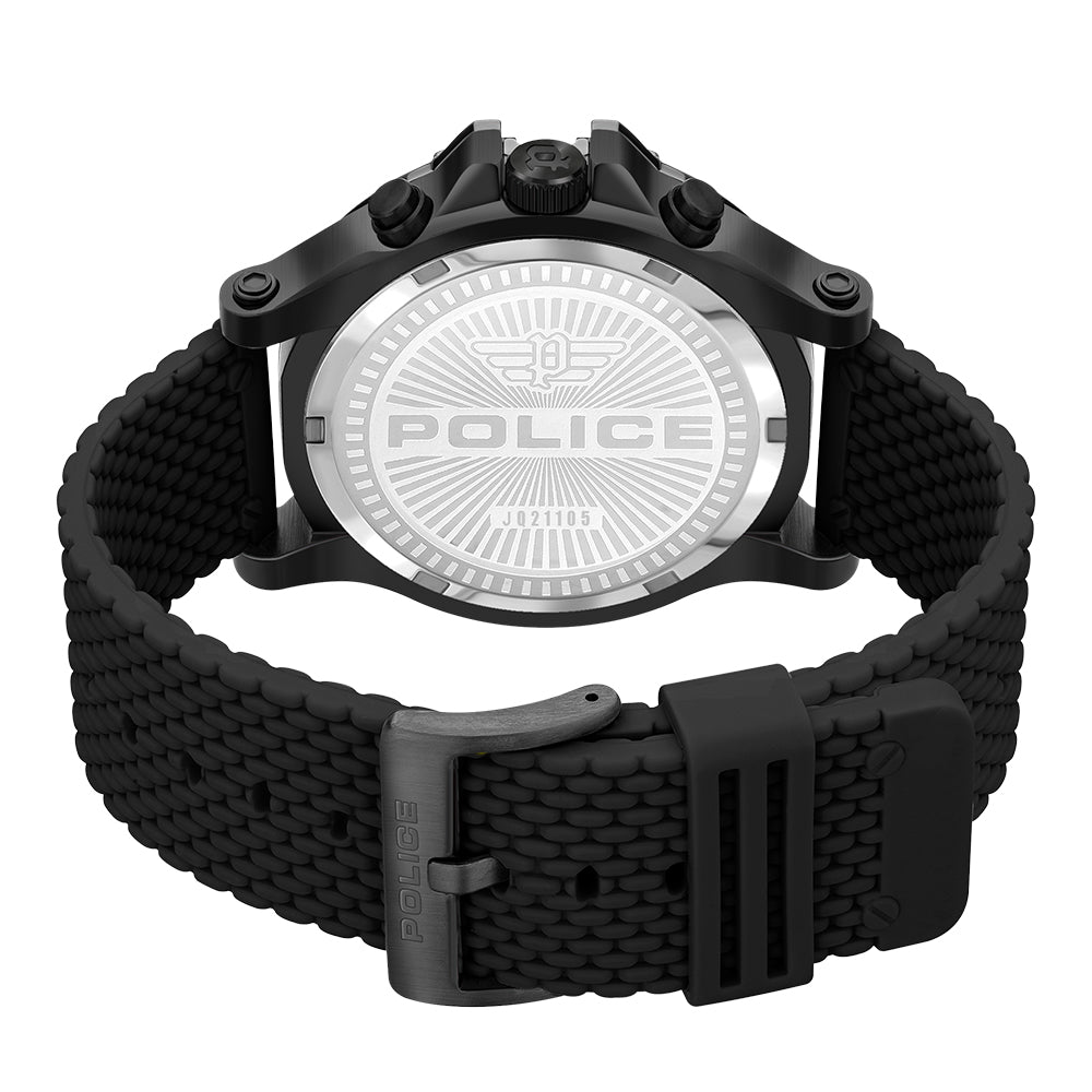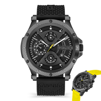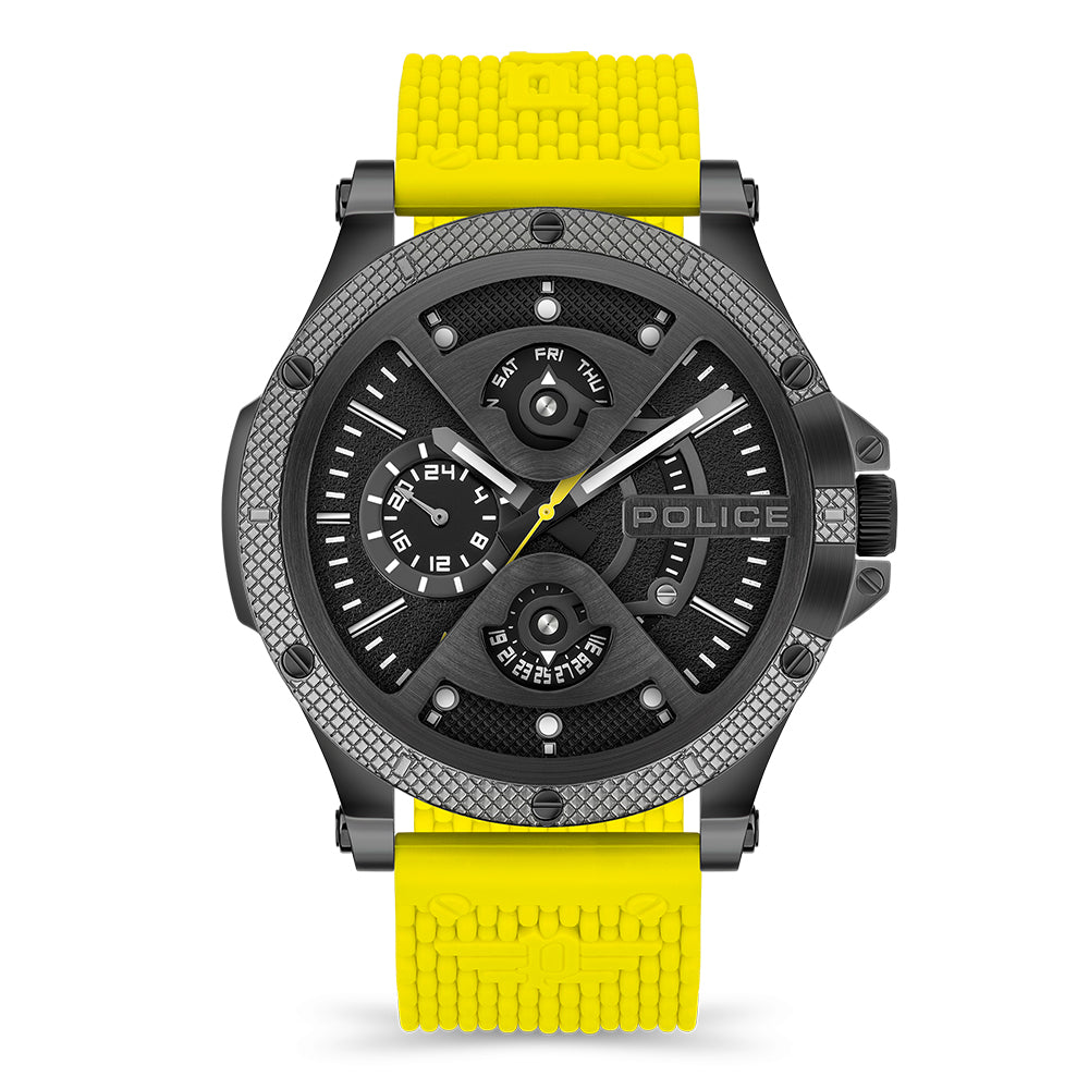 Consider as a symbol of coolness with positive connotations, this Police watch has accents of innovation specifically engine-turned visual elegance with active throttling finish dials! This multifunction watch comes in interchangeable straps to go with your mood.