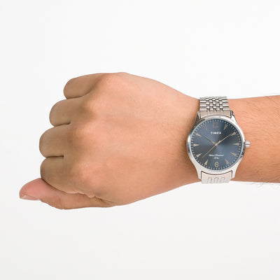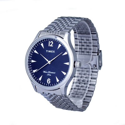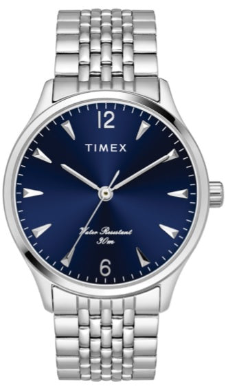 Whether you're out to a game or at the office, this classic Timex watch design is ideal for everyday wear. With its round blue dial, time is very easy to read, day or night.