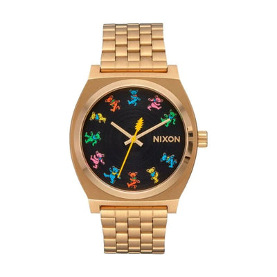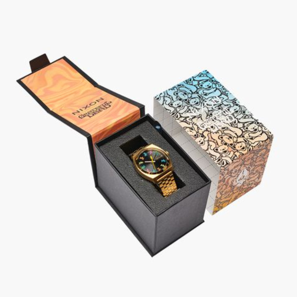 A True Original. Bears, lightning bolts, skeleton hands and roses. An icon of Nixon heritage meets musical legends, the Grateful Dead Time Teller's vibe celebrates simple sophistication and funky experimentation. The minimalist design is the perfect canvas for some grate aesthetic expression, while its 10 ATM / 100m water rating means getting wet is no big deal. It's always down to collaborate and with a full spectrum of finishes, whatever your style, there’s a Grateful Dead Time Teller for you.