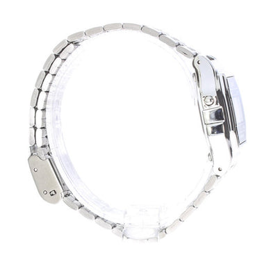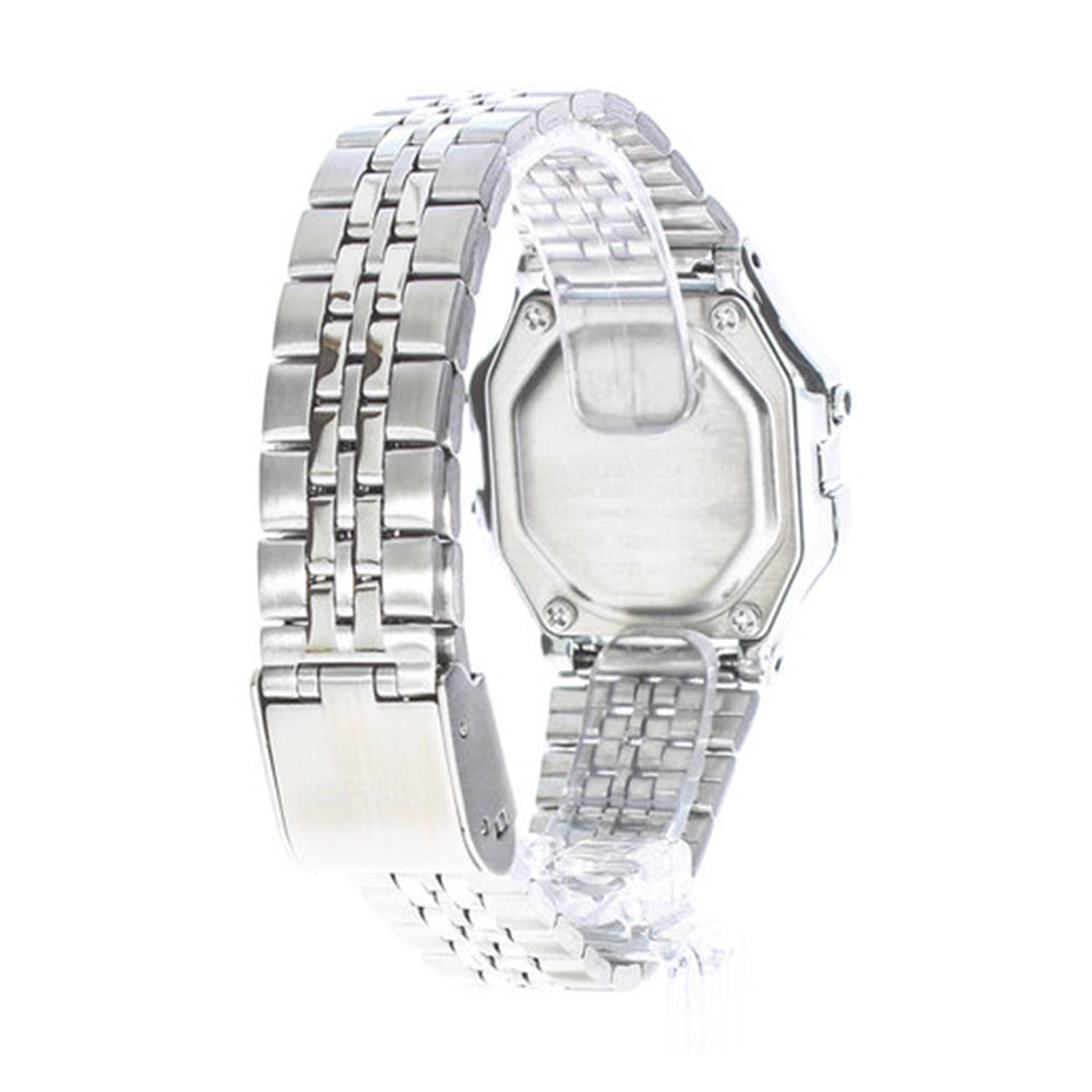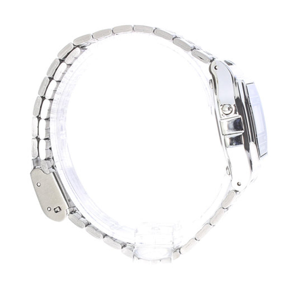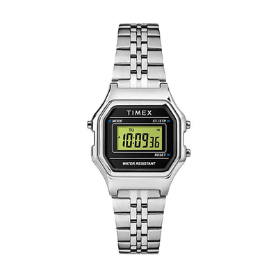 We miniaturized our classic digital watch. The silver-tone case and bracelet work great in a stack of bangle bracelets for a retro-chic look.