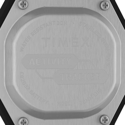 Take your wellness to the next level with the Timex Activity and Step Tracker, an easy-to-wear watcg that packs the functionality you need to achieve your personal best. Featuring a black 40mm case and a comfortable, ergonomic strap, it's a chich and sleek companion designed to help you get the most out of every movement. We've paired step and activity tracking technology with our revolutionary INDIGLO® backlight and up to 50 meters of water resistance to create a practical pieve expertly designed for daily health management.