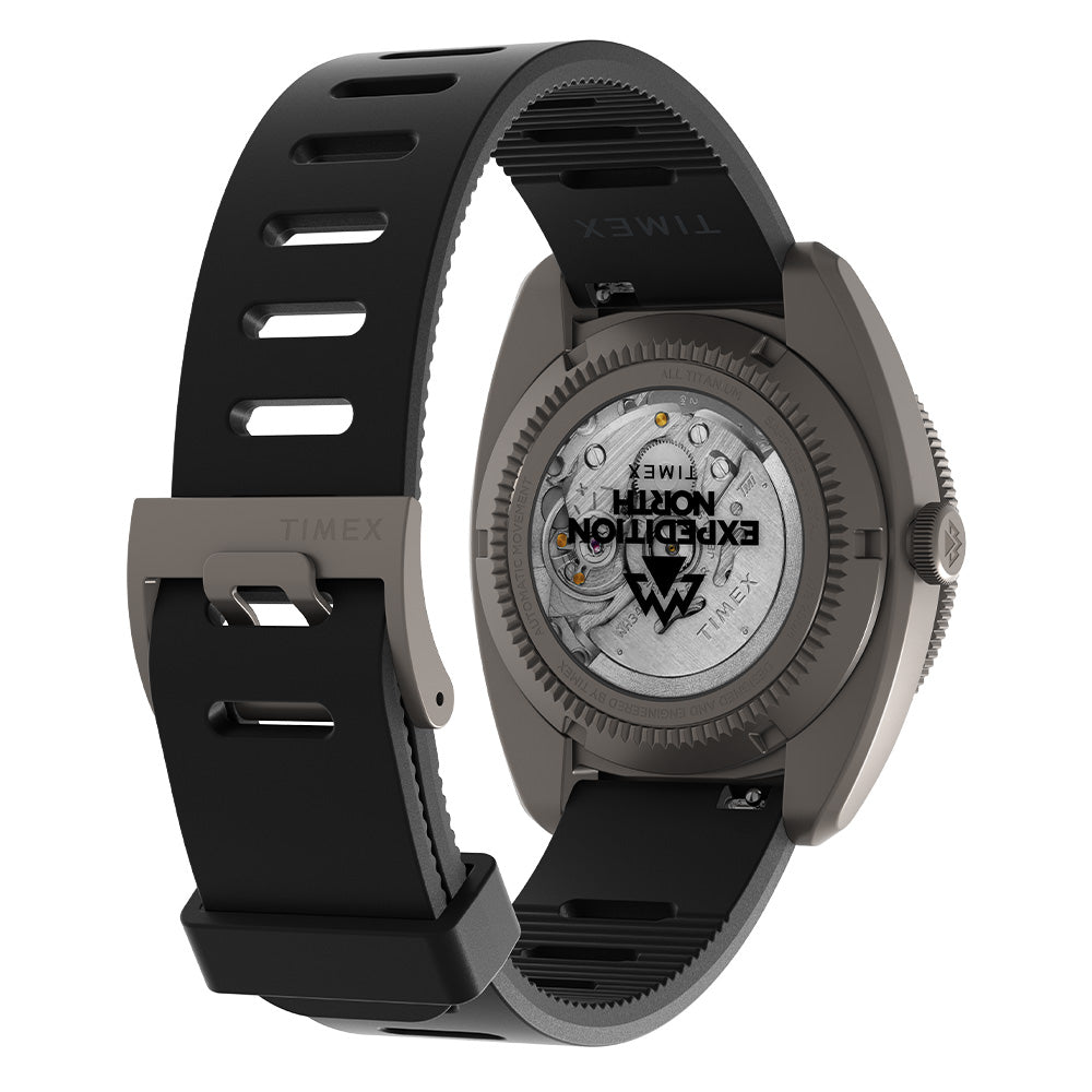 The Expedition North® Titanium Automatic is ready to go the distance. Constructed with the most durable materials, the shock-resistant 41mm case is rendered in true titanium, complemented by a scratch-resistant sapphire crystal and a screw-down crown and case back that provide 200m of water resistance. The textured black dial features a date window and Super-LumiNova® in-fill for night visibility, making it easy to read in any situation. But that's not all - this watch also features a Japanese automatic movement and a soft silicone strap complete and a titanium buckle. It's a timepiece that lives up to the Timex legacy of fully equipping you for your adventures ahead while embodying the kind of tradition you can wear every day.