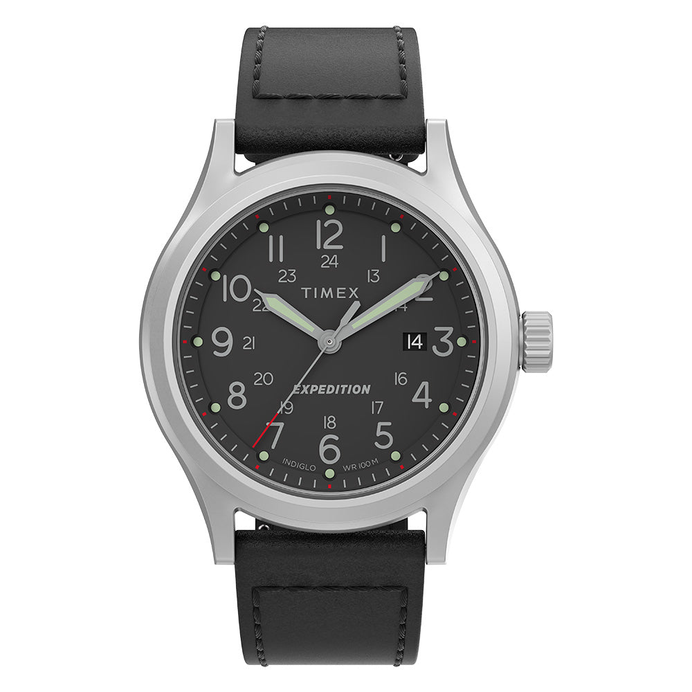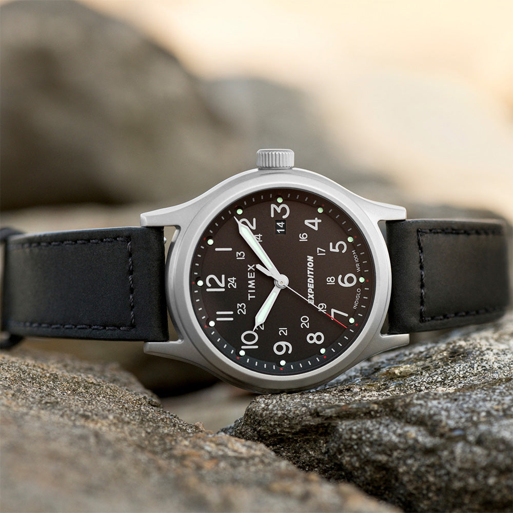 Our Expedition® watches have been an outdoor-adventure mainstay for years now, and this update brings fresh appeal to a trail-ready classic. Featuring our much-loved INDIGLO® backlight and luminescent hands on the military-inspired dial, it’s as easy to read at midnight as it is at high noon. And thanks to the stainless-steel case that’s water resistant to 100 meters, this sturdy watch with a black natural leather strap will go the distance when you take it on your next adventure — rain or shine, mountain or valley, and everything else in between.