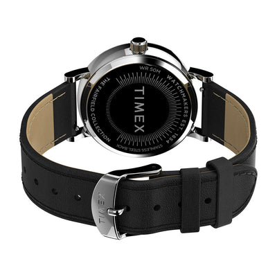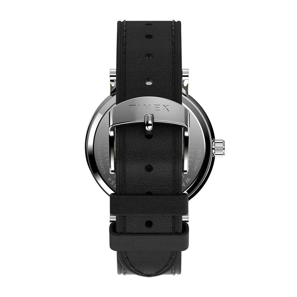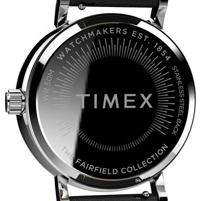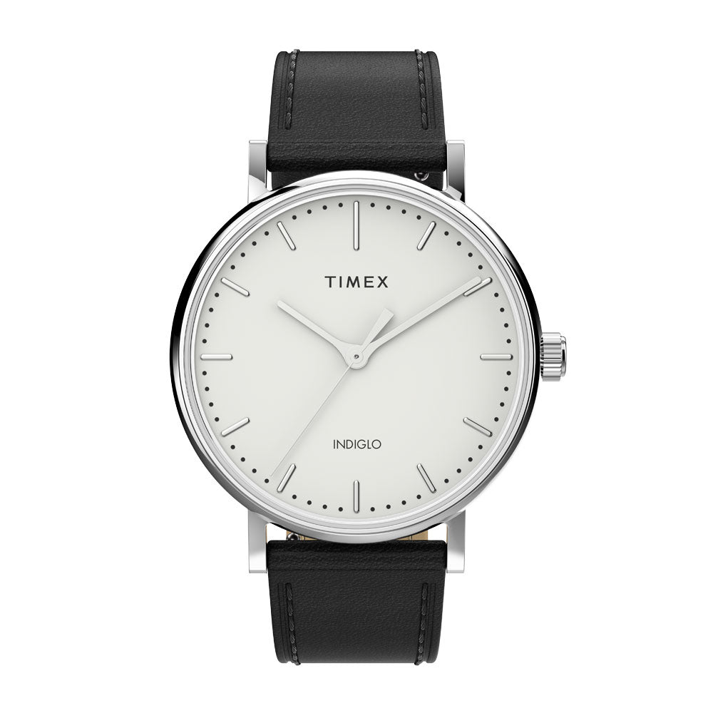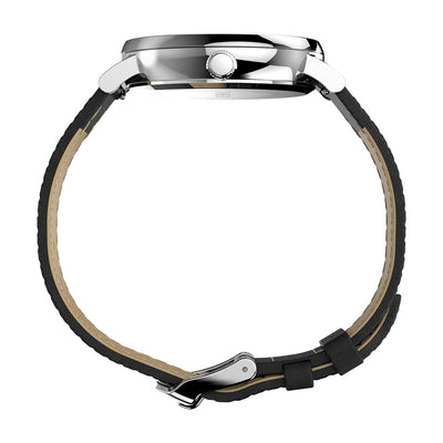 Less is more. We paired our minimalist white Fairfield dial with a smooth black natural leather strap for a watch that is tastefully free of complications.