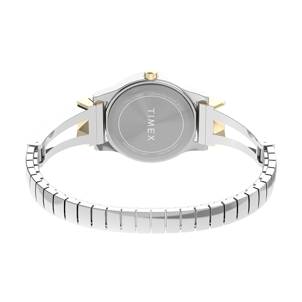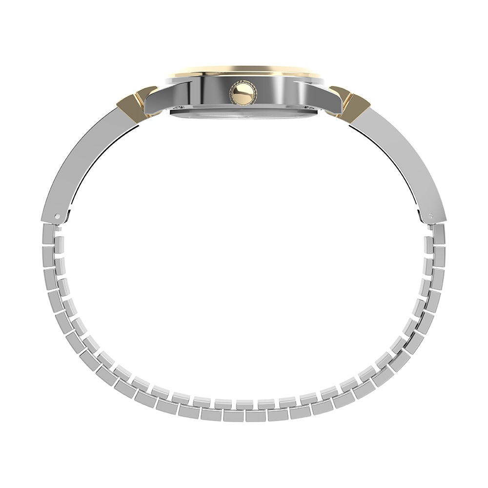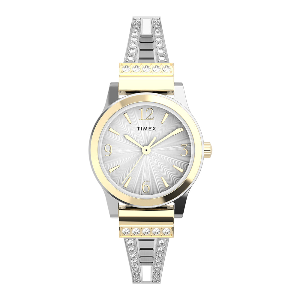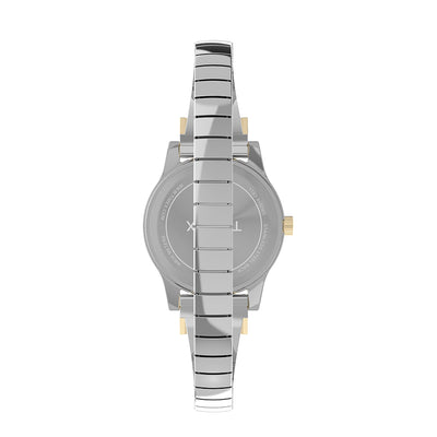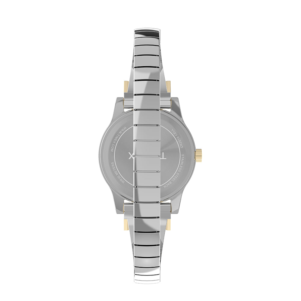 Design meets comfort with our Main Street collection. We?ve paired the look of a stylish timepiece with its understated 25mm two-tone case and textured silver dial with the convenience of a two-tone expansion band with sparkling crystals, creating the perfect accessory for any outfit.
